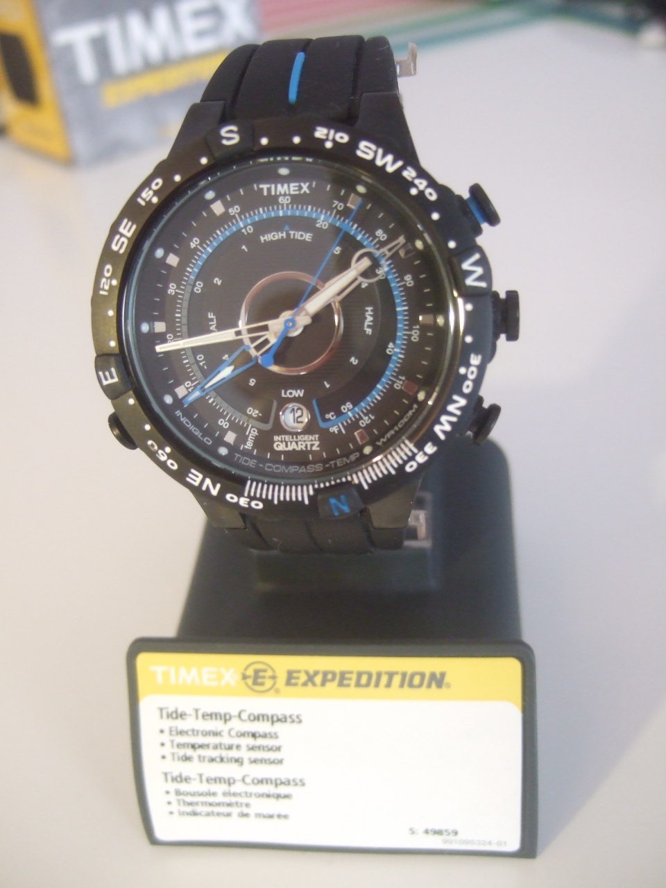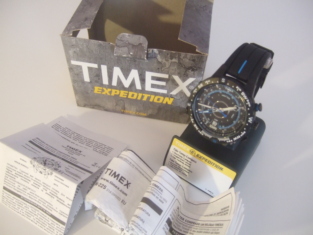 Продаются TIMEX EXPEDITION T49859. Часы походника. Три сенсора - термометр, компас, приливы. Корпус черный ПВД, стекло минеральное. Двунаправленный вращающийся безель с разметкой компаса. Часы не носились - находились в коллекции, состояние идеальное, царапин, сколов нету. Очень мягкий силиконовый ремешок, часы хорошо садятся даже на небольшое запястье, очень легкие. Крышка - хлопушка, ВР 100 метров, головка не завинчивается. В комплекте фирменная подставка, родная картонная коробка, инструкция. Часы были сегодня вскрыты единственный раз для замены батарейки (12.03).
