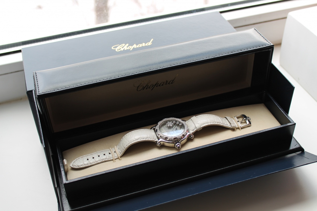 Chopard Happy Sport.Ref.-28/8946.Часы в отличном состоянии,полный комплект.Пару дней назад был заменён элемент питания(Renata).Сертификат подлинности с точным указанием бриллиантов и золота(см.фото).Куплены в бутике Mercury.Цена новых часов на данный момент составляет 1290500 рублей.(скрин прилагаю). Любые проверки на подлинность.Отправка в регионы.