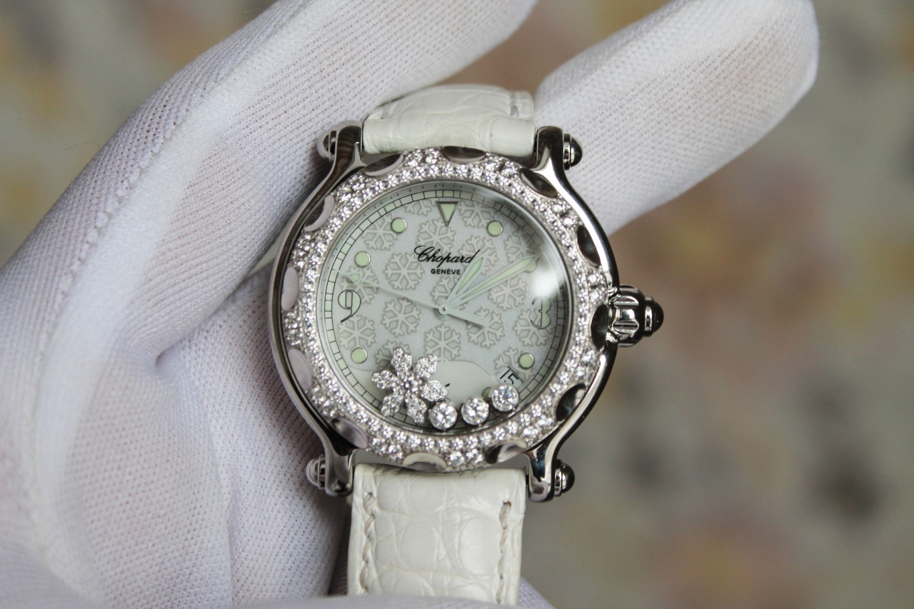 Плавающие бриллианты и бриллиантовая снежинка на циферблате
