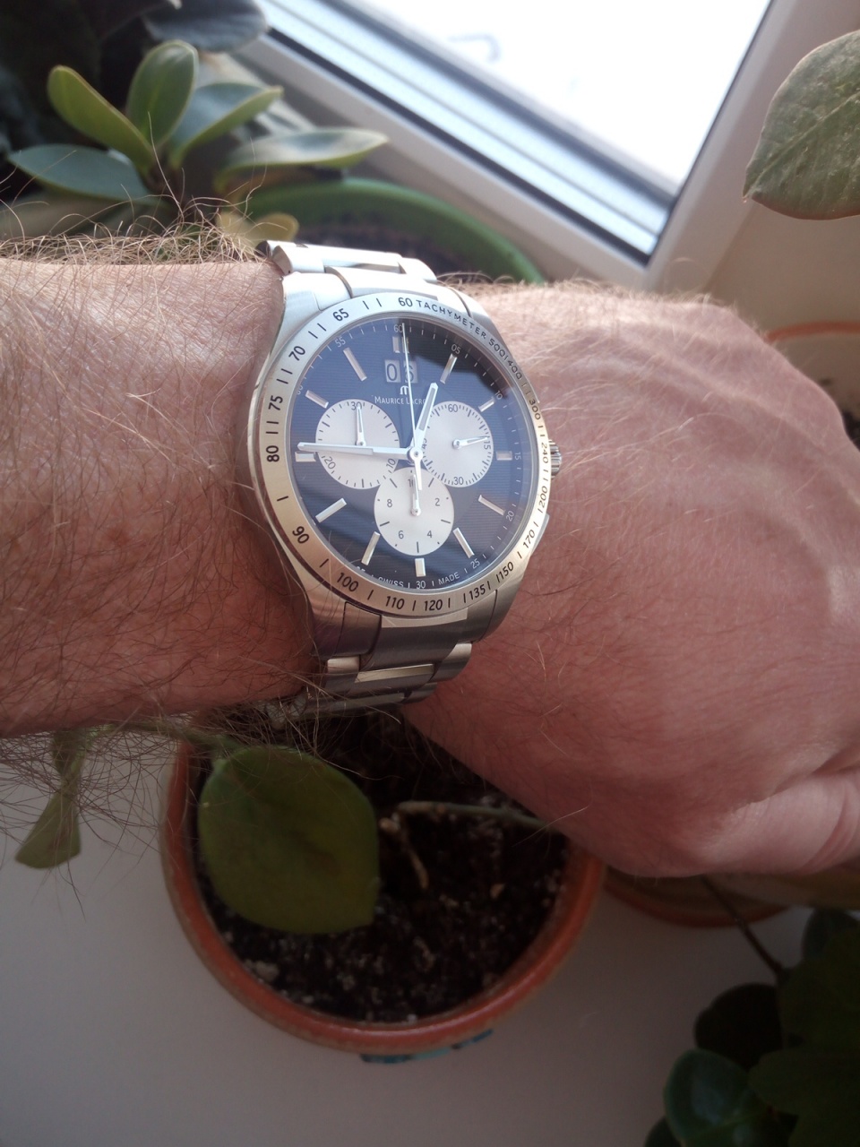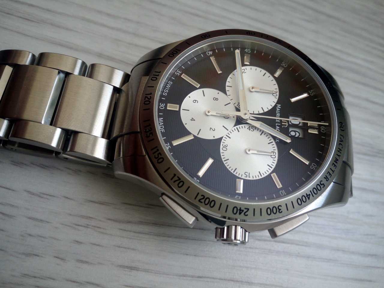 В продаже красивый строгий кварцевый хронограф от именитого производителя. Состояние хорошее, присутствуют естественные следы носки, но ничего критичного, стекло чистое, ход уверенный, все функции хронографа работают.