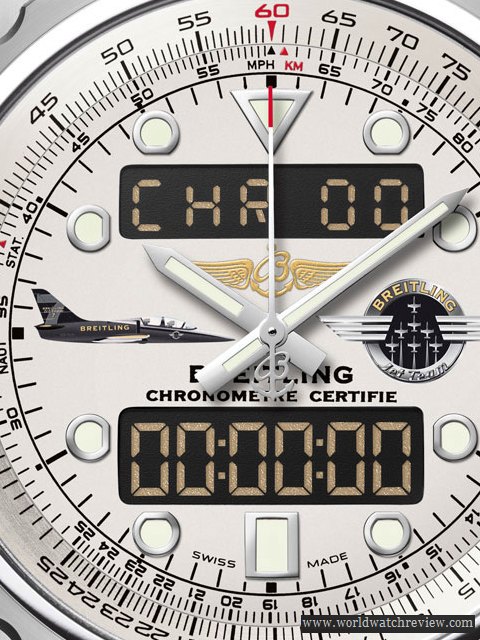 В честь «подшефной» эскадрильи Breitling Jet Team, компания BREITLING представила лимитированные (или не очень – серия ограничена 1000 экземпляров) часы Chronospace Jet Team. Которая от серийной модели отличается простым серебристым циферблатом на котором присутствует изображение одного из семи L-39 Albatros входящих авиапарк команды и собственно ее эмблема. Корпус из нержавеющей стали диаметром 48 мм., двойная задняя крышка, являющаяся резонирующей камерой, сапфировое стекло с водостойкостью 50 метров.