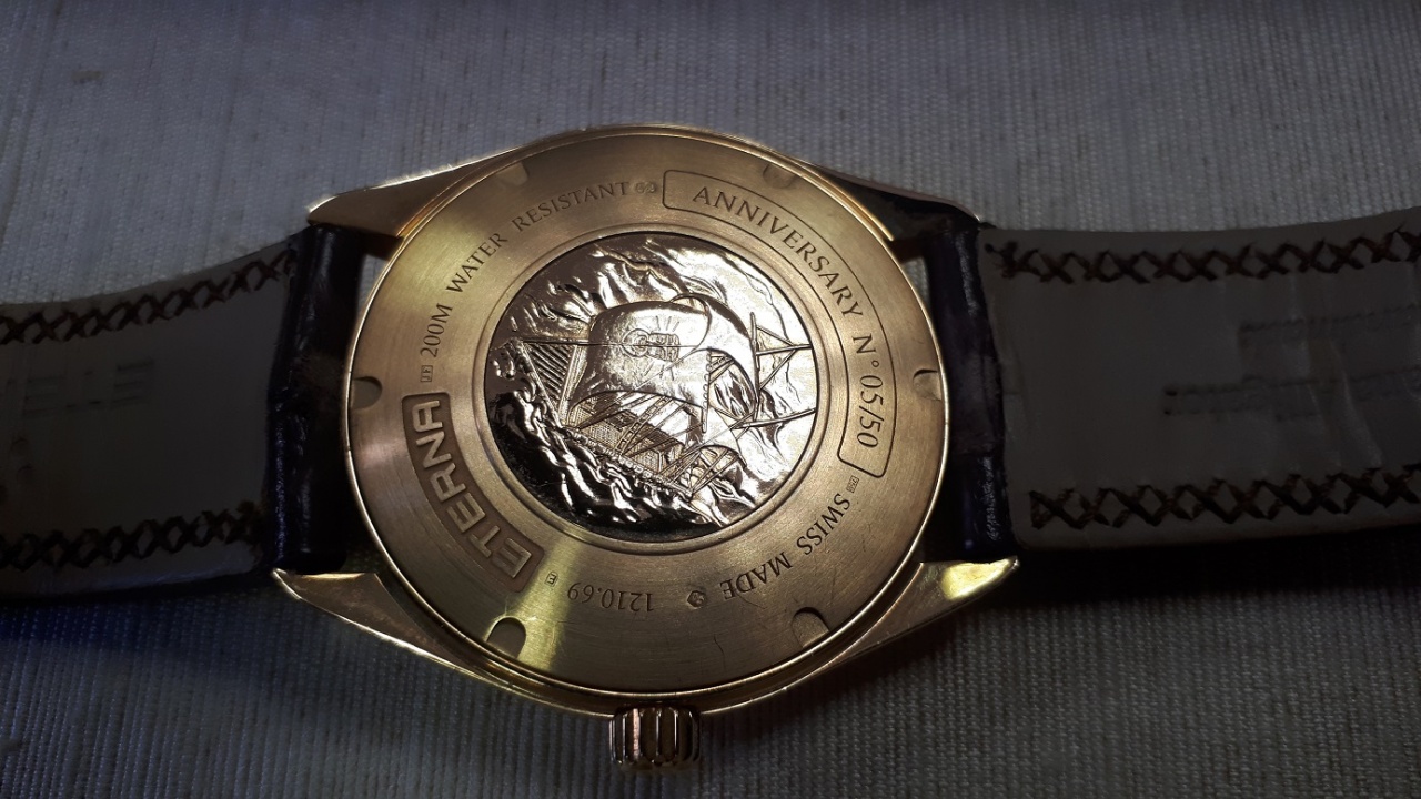 От оригинала 50-летней давности часы отличаются золотыми корпусом, стрелками и накладными индексами треугольной формы. Из золота изготовлена также и завинчивающаяся задняя крышка с медальоном, на котором изображен плот «Контики».