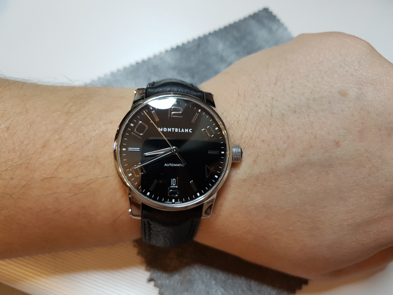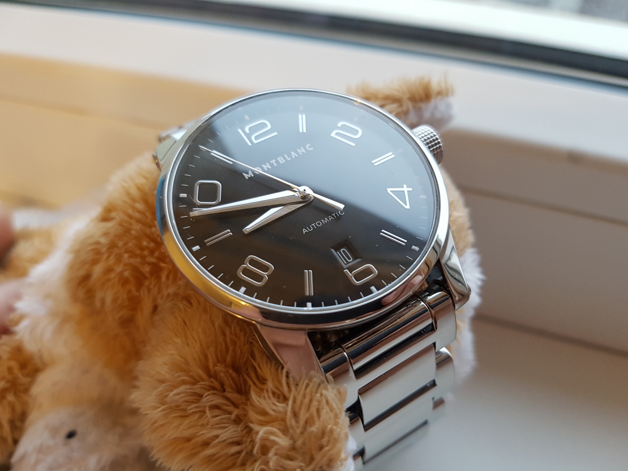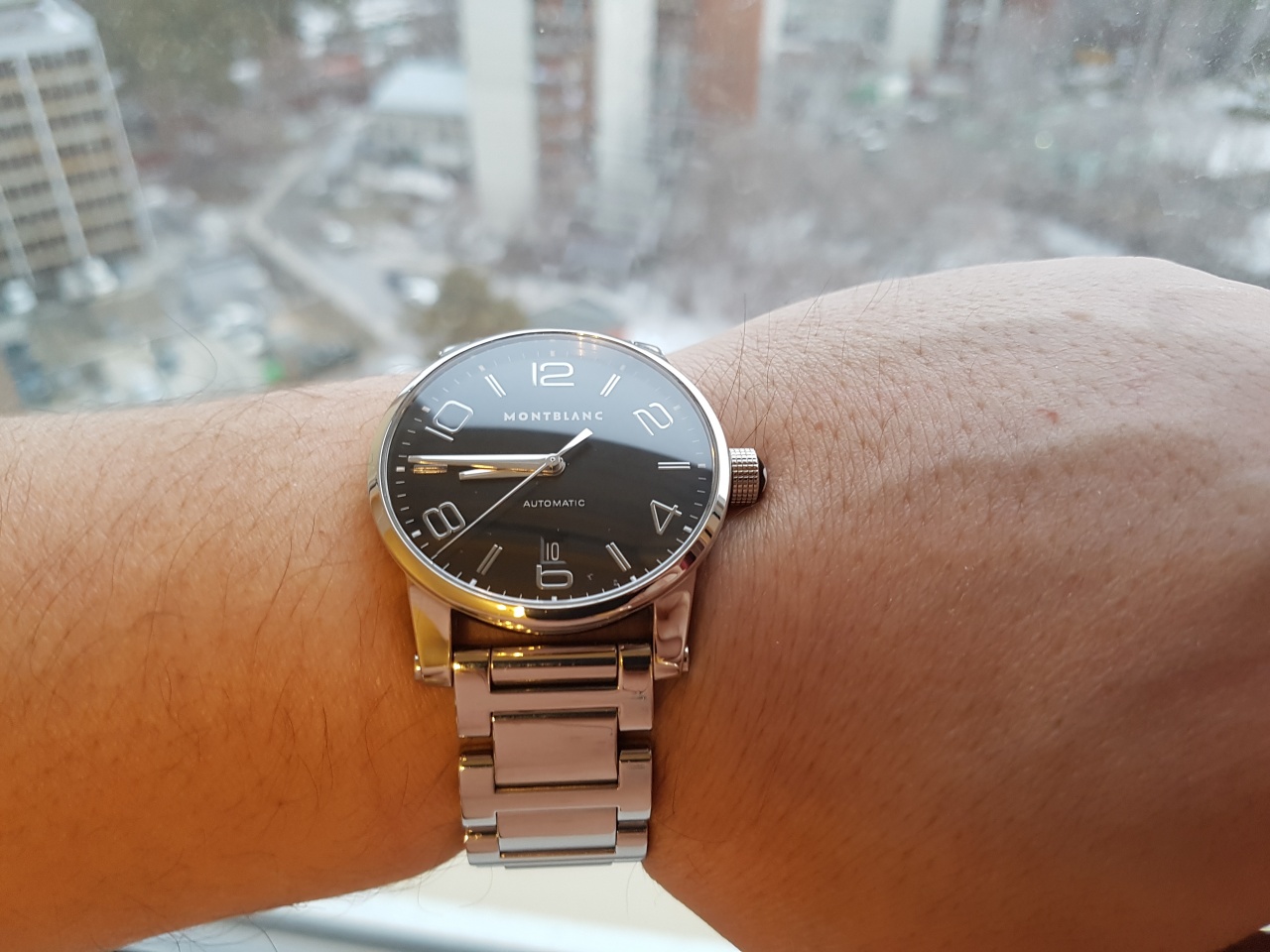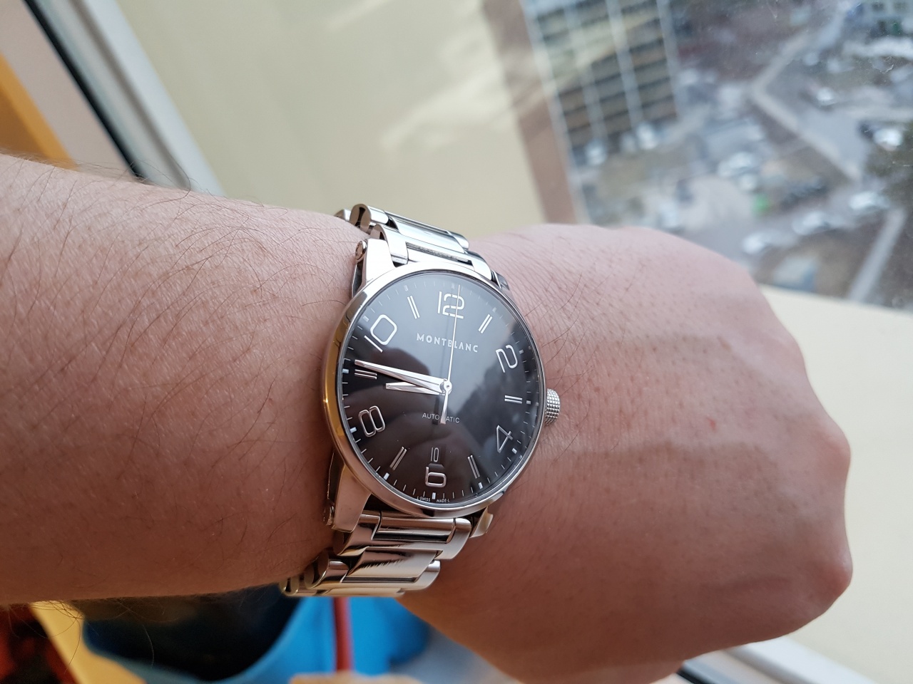 Вообще надо сказать что часы Montblanc TimeWalker на удивление прекрасно смотрятся и на женской ну и конечно на мужской руке. на моей 18см я считаю сидят идеально.