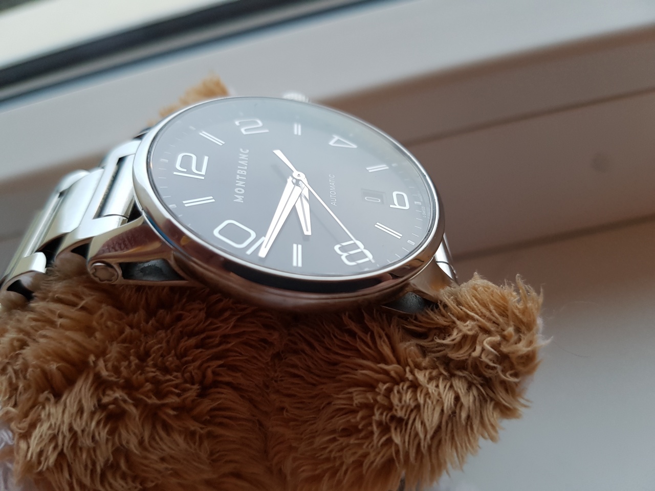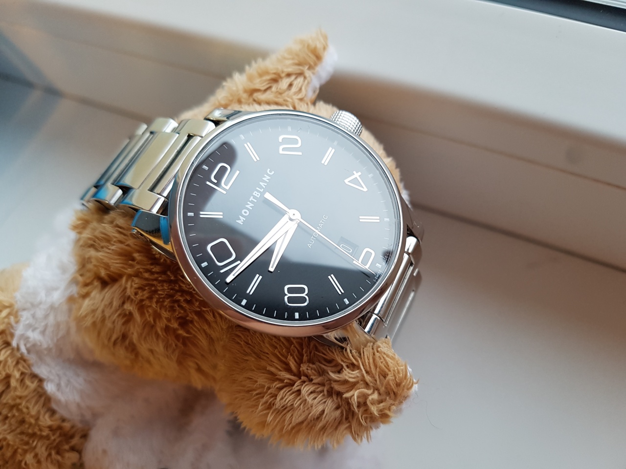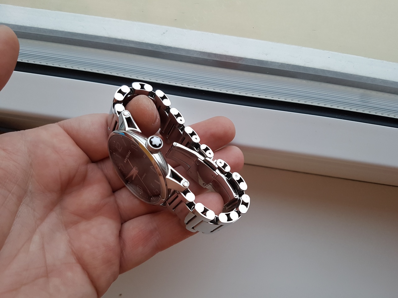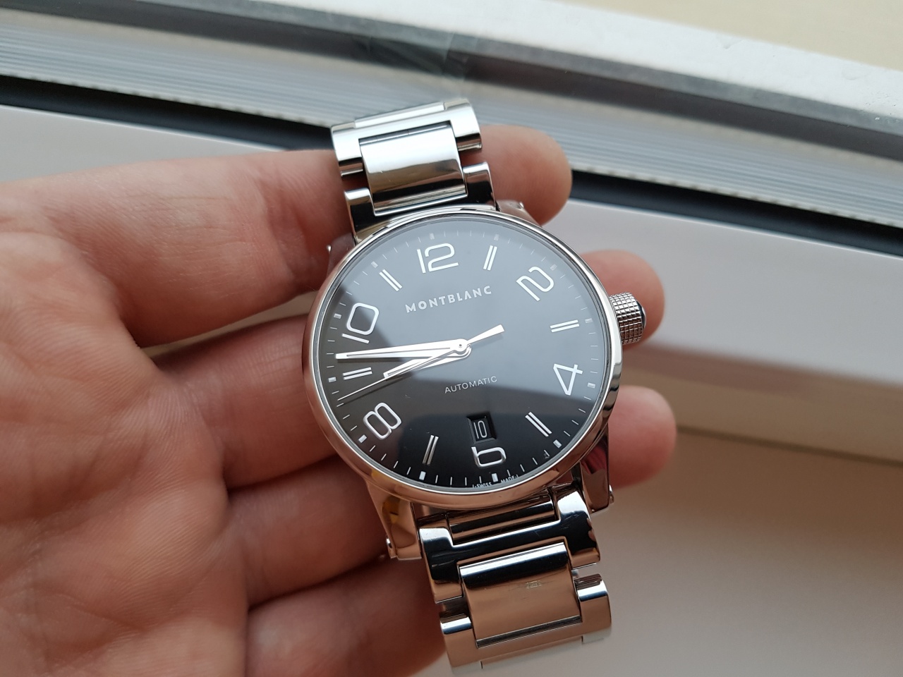 Вообще надо сказать что часы Montblanc TimeWalker на удивление прекрасно смотрятся и на женской ну и конечно на мужской руке. на моей 18см я считаю сидят идеально.