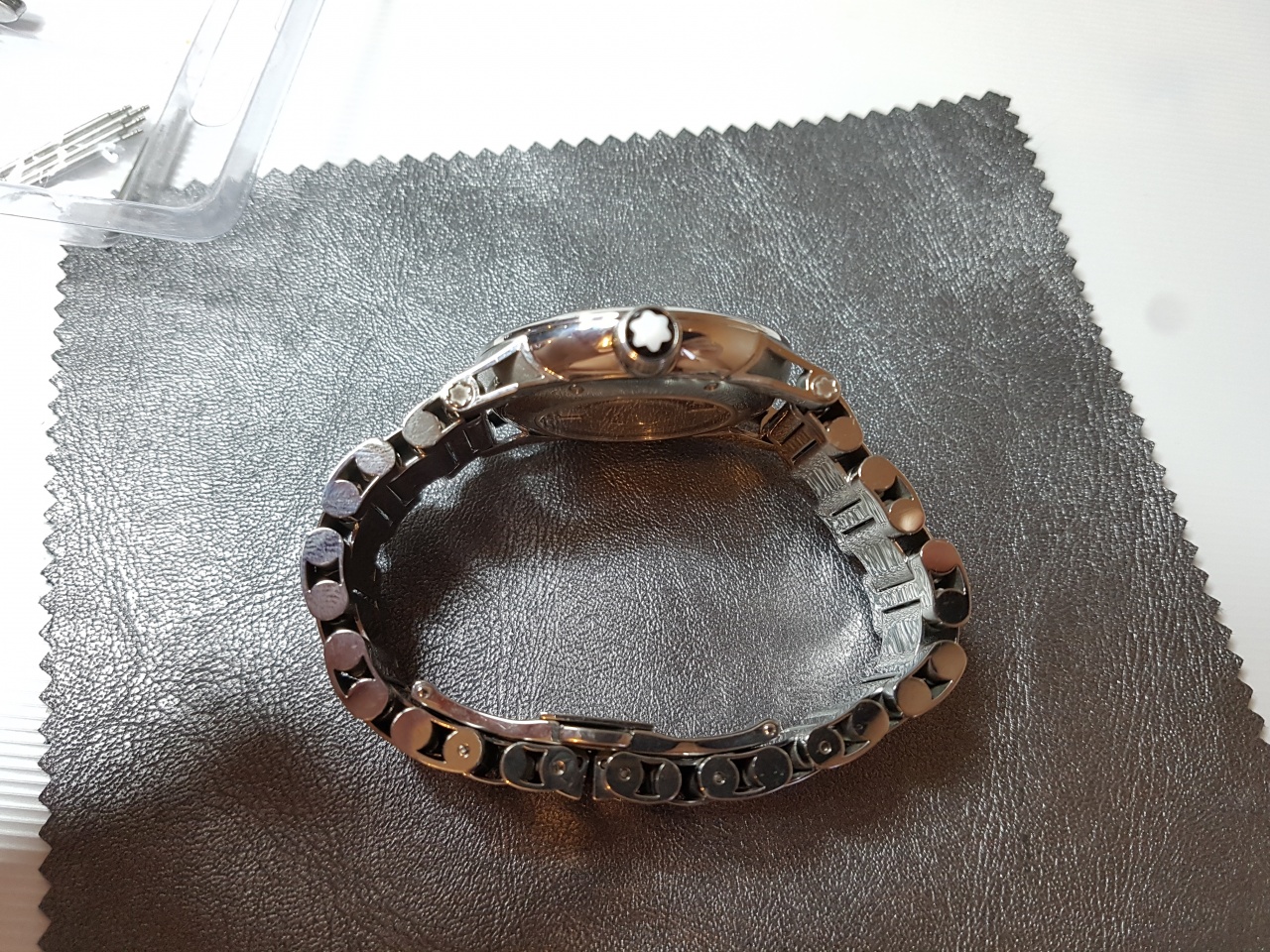 Часы в очень хорошем состоянии, идут в комплекте с новым неоригинальным ремнем (кожа на каучуковой основе. крайне практичная и приятная вещь) и конечно шикарный браслет в стиле МОНБЛАН, подойдет на небольшую мужскую руку либо женскую.