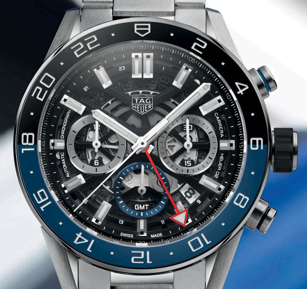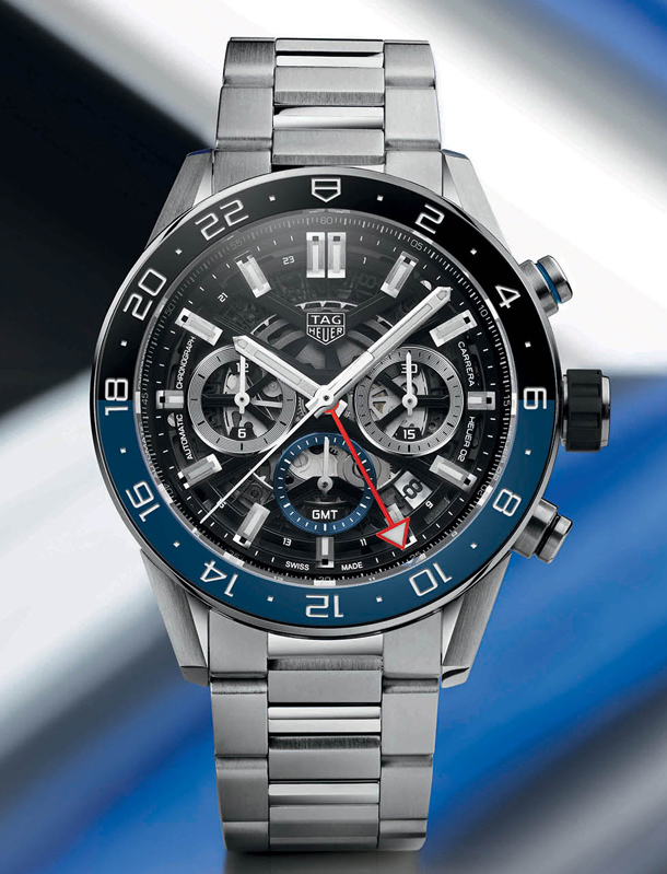 Модель Carrera в этом году отмечает свое 55-летие. В честь этого события часовая мануфактура TAG Heuer представила новинку Carrera Heuer 02 GMT Chronograph. Это часы усложнены новой функцией, которая несомненно порадует любителей путешествий. Бестселлер Carrera обрел стрелку GMT и 24-часовой безель.