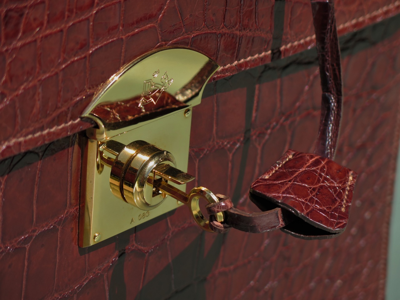 Портфель застегивается на фирменный замок с индивидуальным номером, запирающийся на ключ.