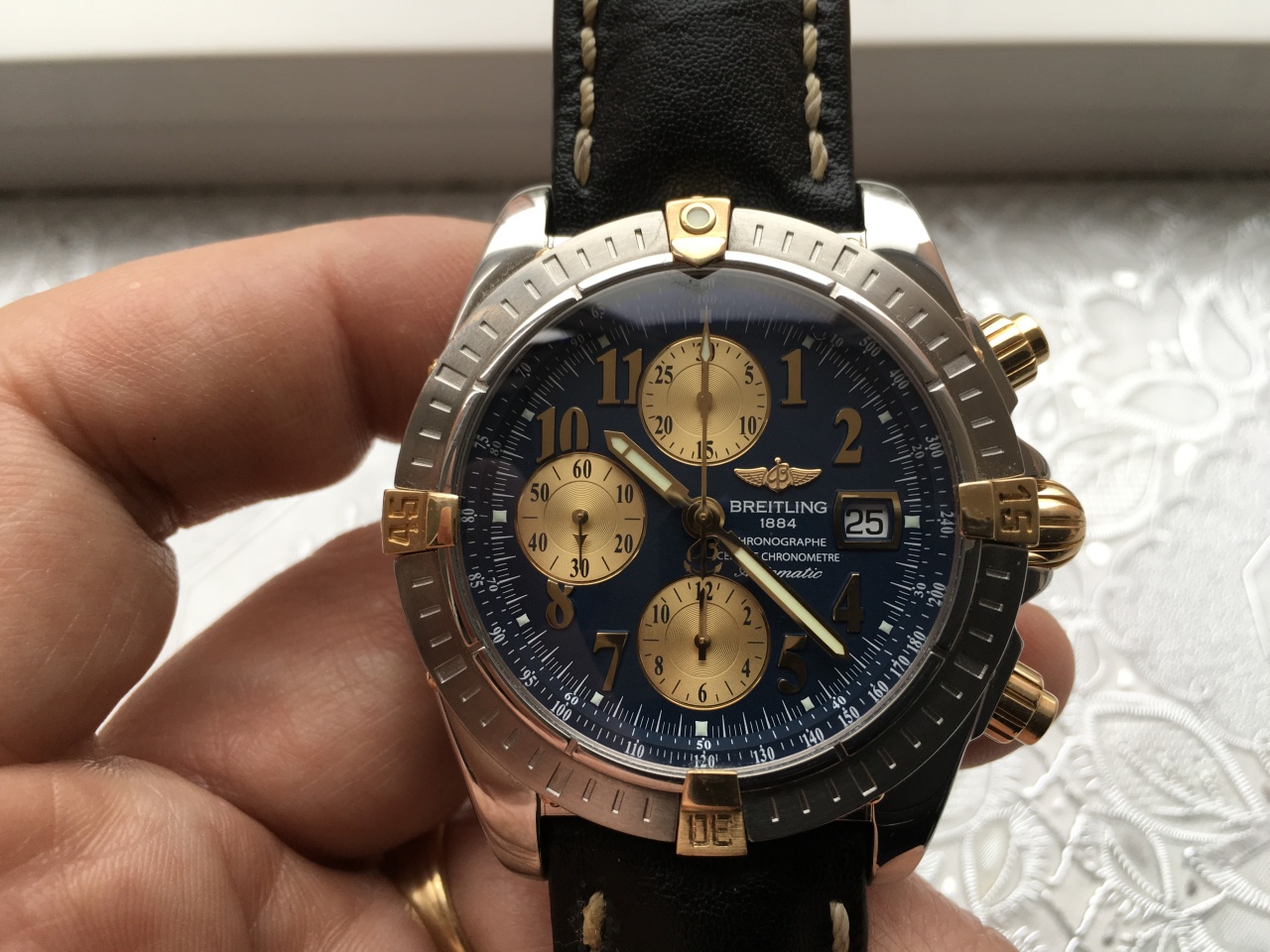 Материал корпуса: сталь, заводная головка/пушеры и райдеры на безеле - золото 750 пробы.