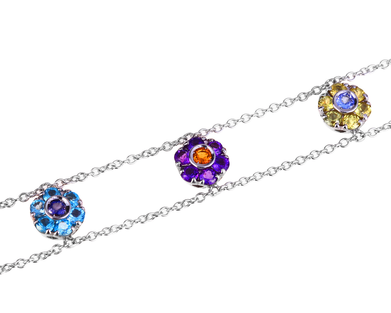 Представляем вашему вниманию яркий золотой браслет с турмалинами, топазами, аметистами, хризолитами, танзанитами и цитрином от всемирно известного бренда Pasquale Bruni из коллекции Fiori Multi-Gemstone.
