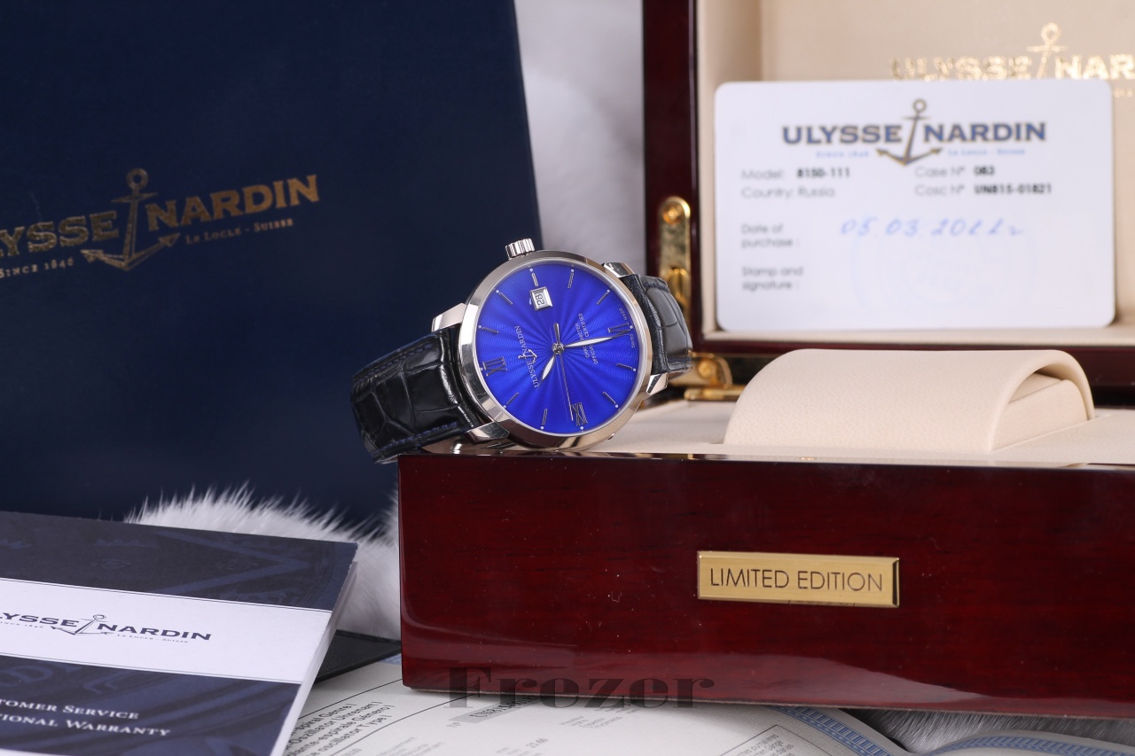 Лимитка Ulysse Nardin с ярко-синим циферблатом в корпусе из 18К белого золота.