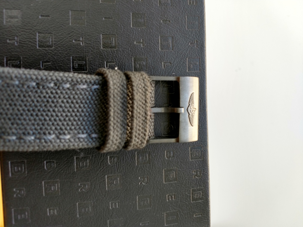 Ремешок: милитари антрацитового цвета, выполнен в военном стиле ультра-прочной ткани и кожи и дополнен титановой застежкой с черным DLC покрытием.