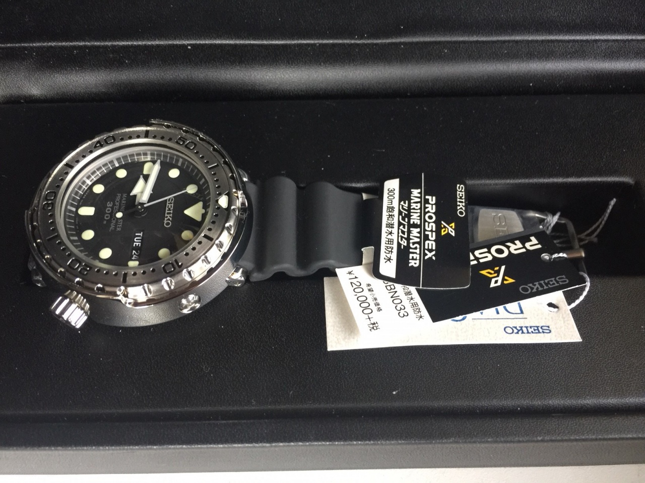 Seiko Prospex Marine Master SBBN033 - мужские кварцевые часы. Корпус этих часов крупного размера (47 мм.) и выполнен из нержавеющей стали. Модель Prospex Marine Master SBBN033 имеет стекло хардлекс, полимерный ремешок чёрного цвета, чёрный циферблат. Водоустойчивость: 300 метров. Дополнительные функции и особенности: дата, день недели, магнитостойкость. Полная заводская комплектация Seiko. Торга нет. Отправка за счёт покупателя.
