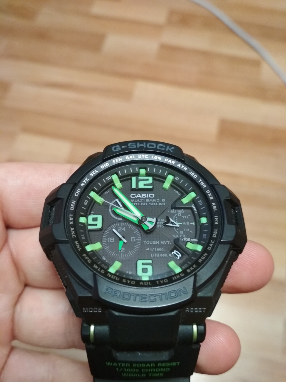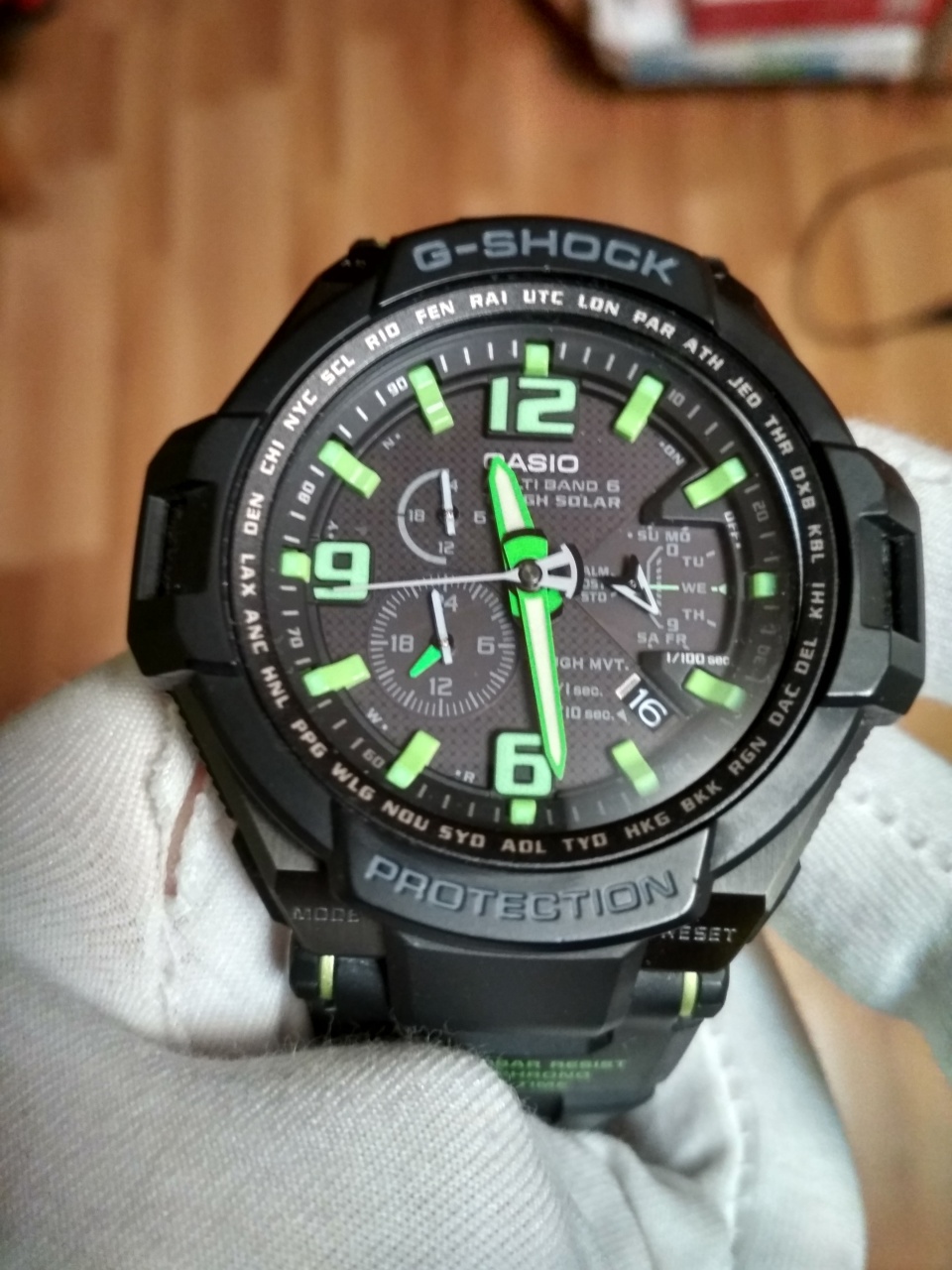 Продаю одни из интереснейших и бронебойных шоков на солнечной батарее, с зеленым цветом меток циферблата и стрелок, при этом сам циферблат больше тянет к графитовому. Часы в идеальном состоянии, куплены в 2016 году состояние поставил АА, хотя тянет ближе к ААА, так как практически не использовались, полный комплект, коробка+макулатура. Давно искал эту модель, но, к сожалению, механика вытеснила с руки кварц.