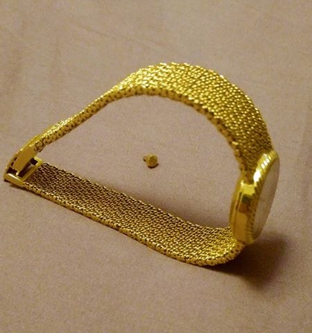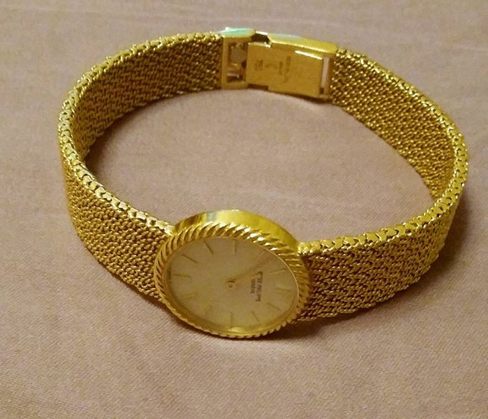 Patek Philippe & Cie ,Geneve, no.1406196,case no.2798281 ref.no.4512/1,год производства 1980. Оригинальные золотые женские механическе часы 18k yellow gold lady's wristwatch with an integrated Patek Philippe 18k yellow gold woven braided bracelet . Семейное наследство,куплены в 1982 году.К сожалению документов и коробки не существует. Толщина 6мм,диаметр 21мм,длина составляет с браслетом около 160 мм ,сапфирное стекло ,весь 50 гр.В отличном рабочем состоянии,очень мало изношены,отличан механизм,недавно сломалась переводная головка.Ремонт в Патековом сервисе стоит 500 еура.Часы прошли оценку и цена сформирована по состоянию на данной момент.