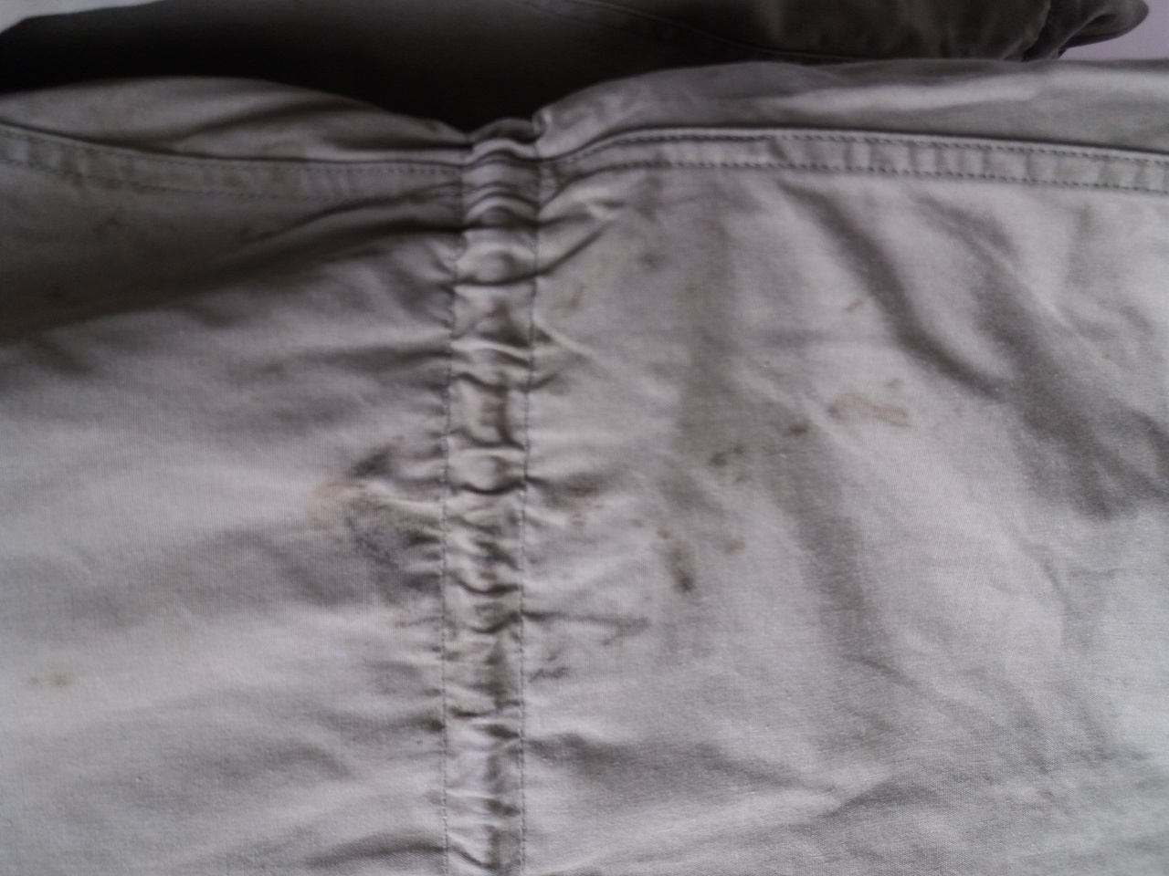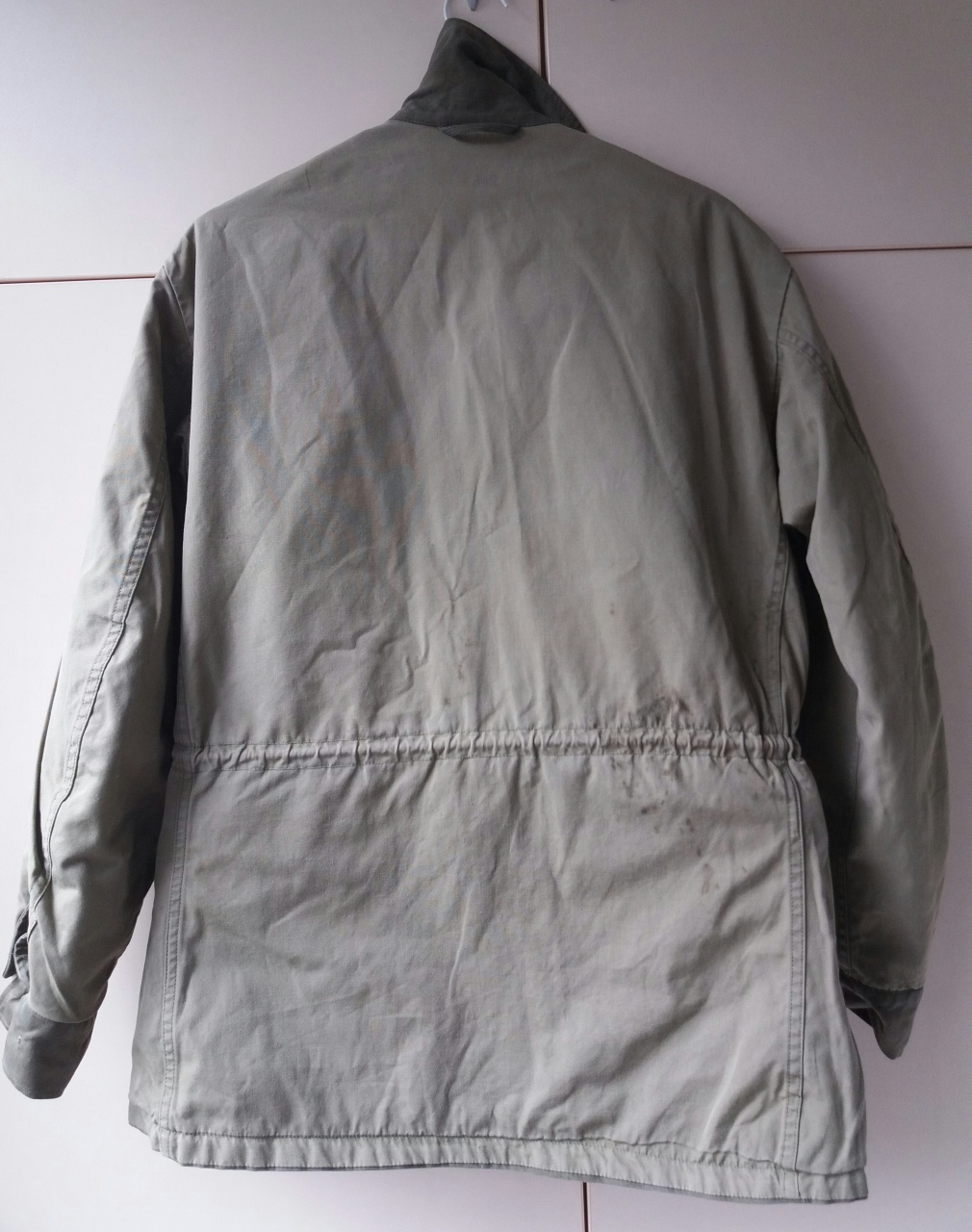 Снаружи состояние отличное, без каких-бы то ни было пятен и изъянов. Шелл (т.е. сама куртка) идеальный, манжеты идеальные, все пуговицы на месте, пришиты фабричными нитками и держатся также прочно как и в 1943 году.