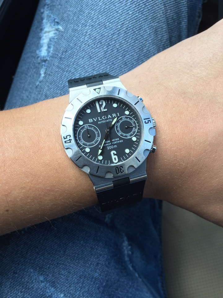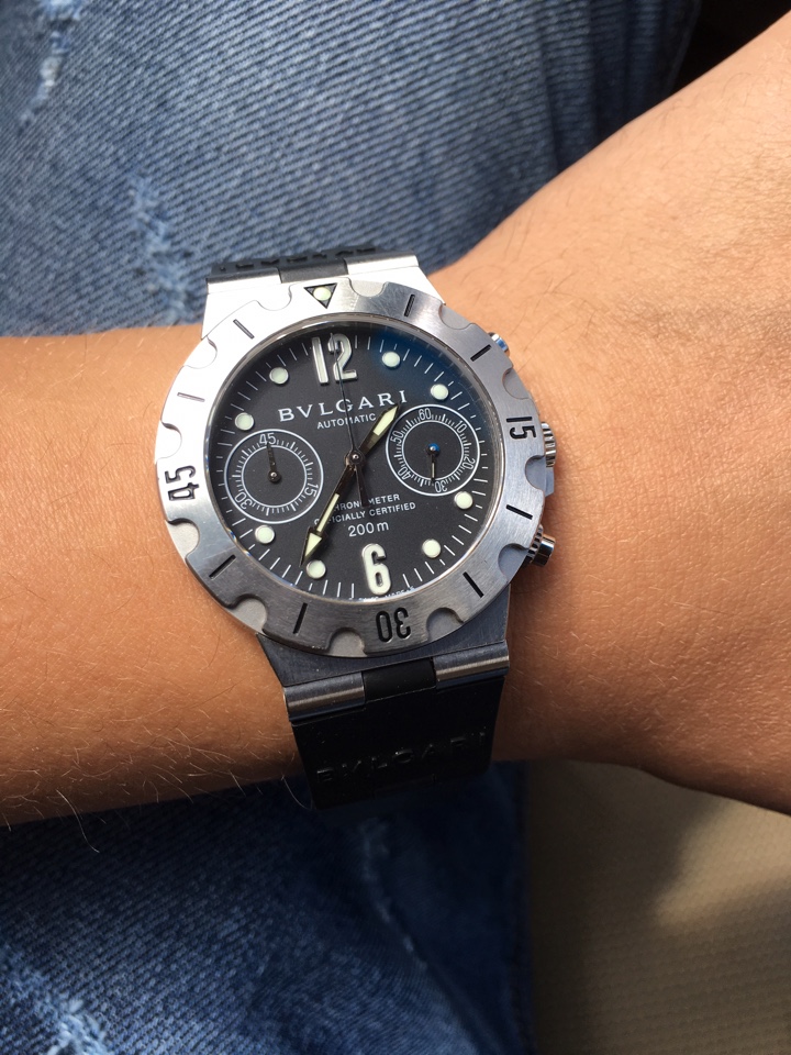 В продаже великолепный дайвер от люкс бренда Bulgari. Узнаваемый дизайн, удобный размер, общее качество изготовления и все плюшки делают эти часы одними из лучших предложений в этой категории. В свое время ритейл часов был около 6000 долларов.