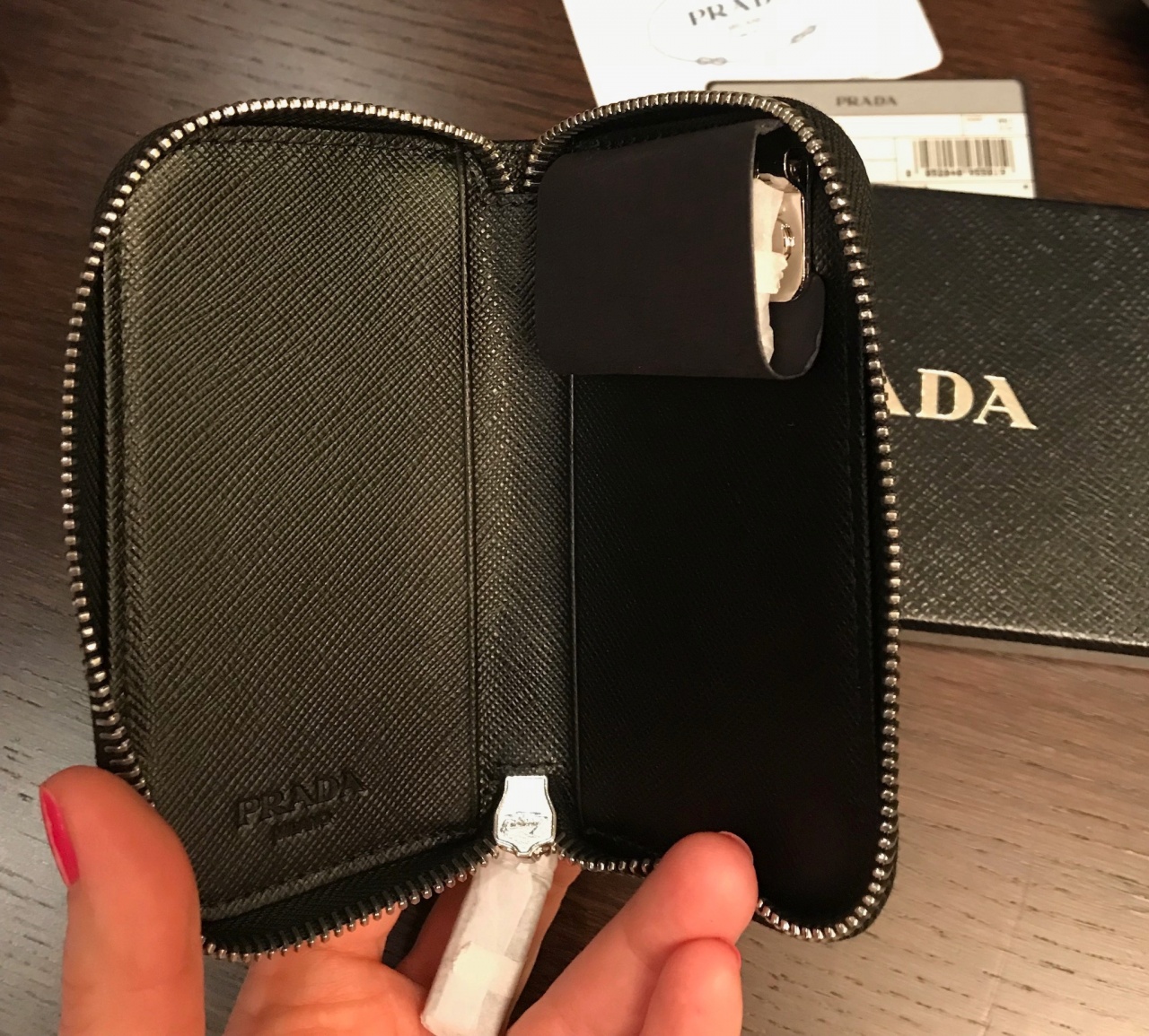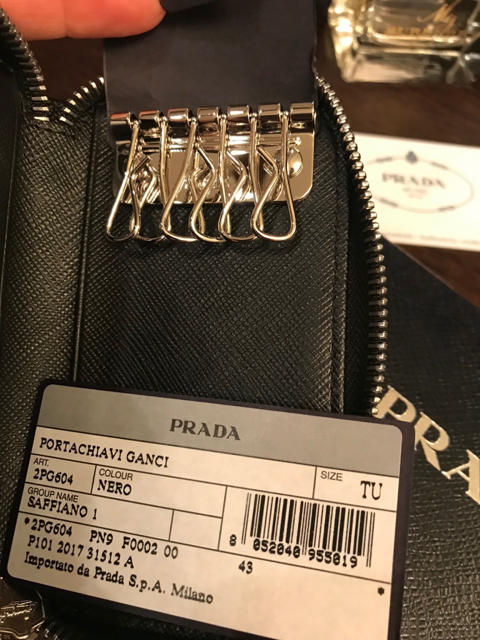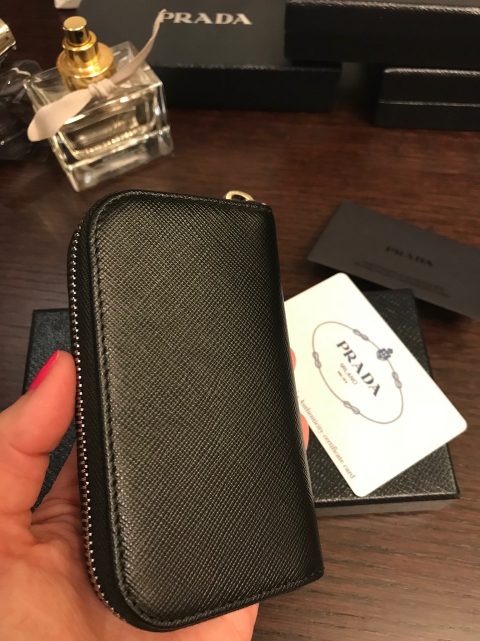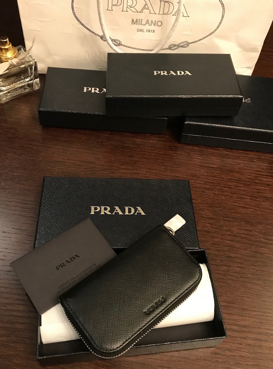 ⭐️ PRADA ⭐️ Мужская ключница на молнии. Новая, вся аутентика. Кожа Saffiano, цвет - черный (Nero)