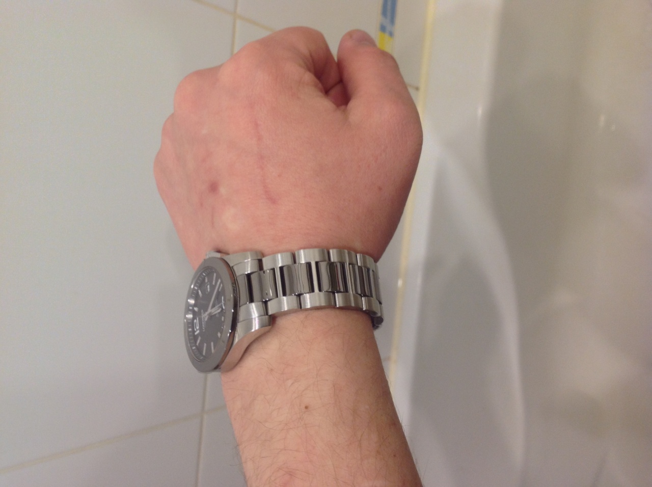 Браслет очень аккуратно укоротил на пару звеньев (звенья в комплекте).