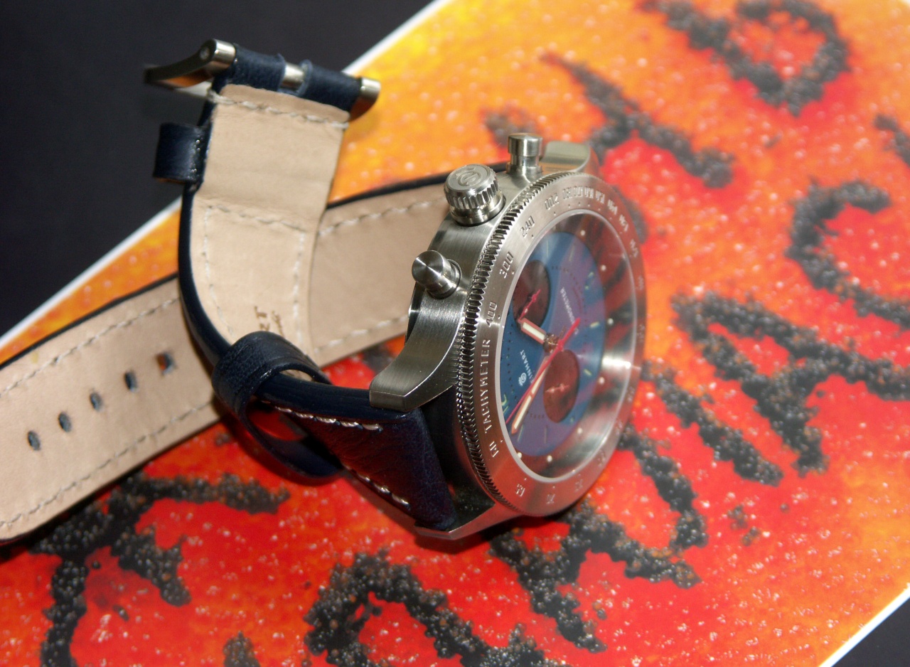 Корпус такой же, как у Griggio. Только обработка получше. Достаточно пестрожёппый вид, с голубым циферблатом. Наденешь на руку, пройдешься по улице – за тобой обязательно гей-парад потянется. Но, с другой стороны, под темно-синюю рубаху, да под джинсы… Не, клево, клево!