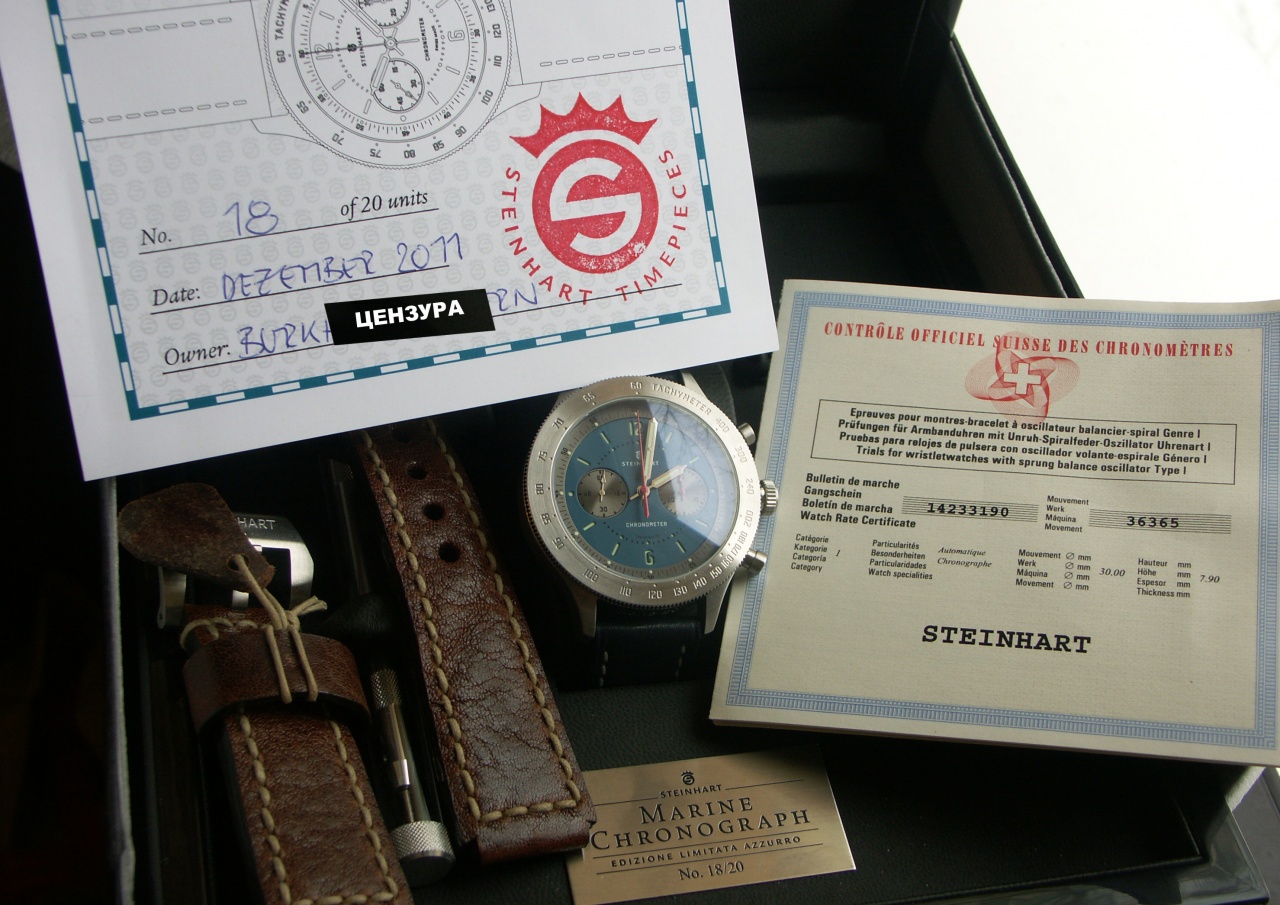Еще в коробочке была протирочная тряпочка для тряпочного протирания, сертификат… Ба! Да там, в бумажке как раз и вписан не я, а некое лицо, прошедшее в повествовании под псевдонимом «Плёцлих фон Триппербах». Цензуру на фотку, чтобы лицо не обиделось. И еще одна бумажка была - с сертификацией хронометра.