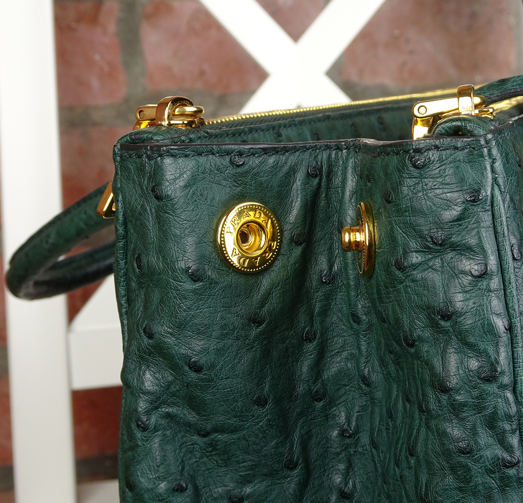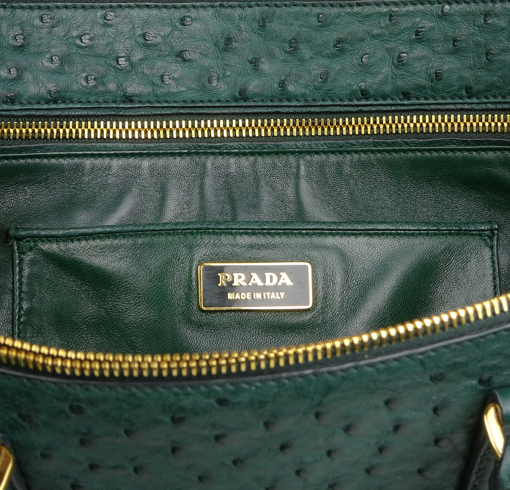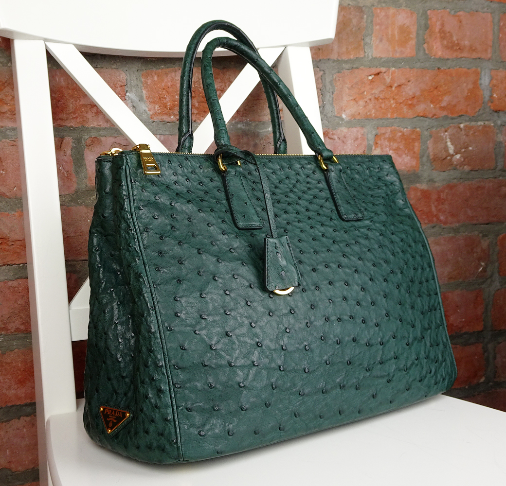 Самая узнаваемая и востребованная модель Prada: сумка Executive tote, знаменитая сумка с тремя отделениями, в роскошной версии: из натуральной кожи страуса.