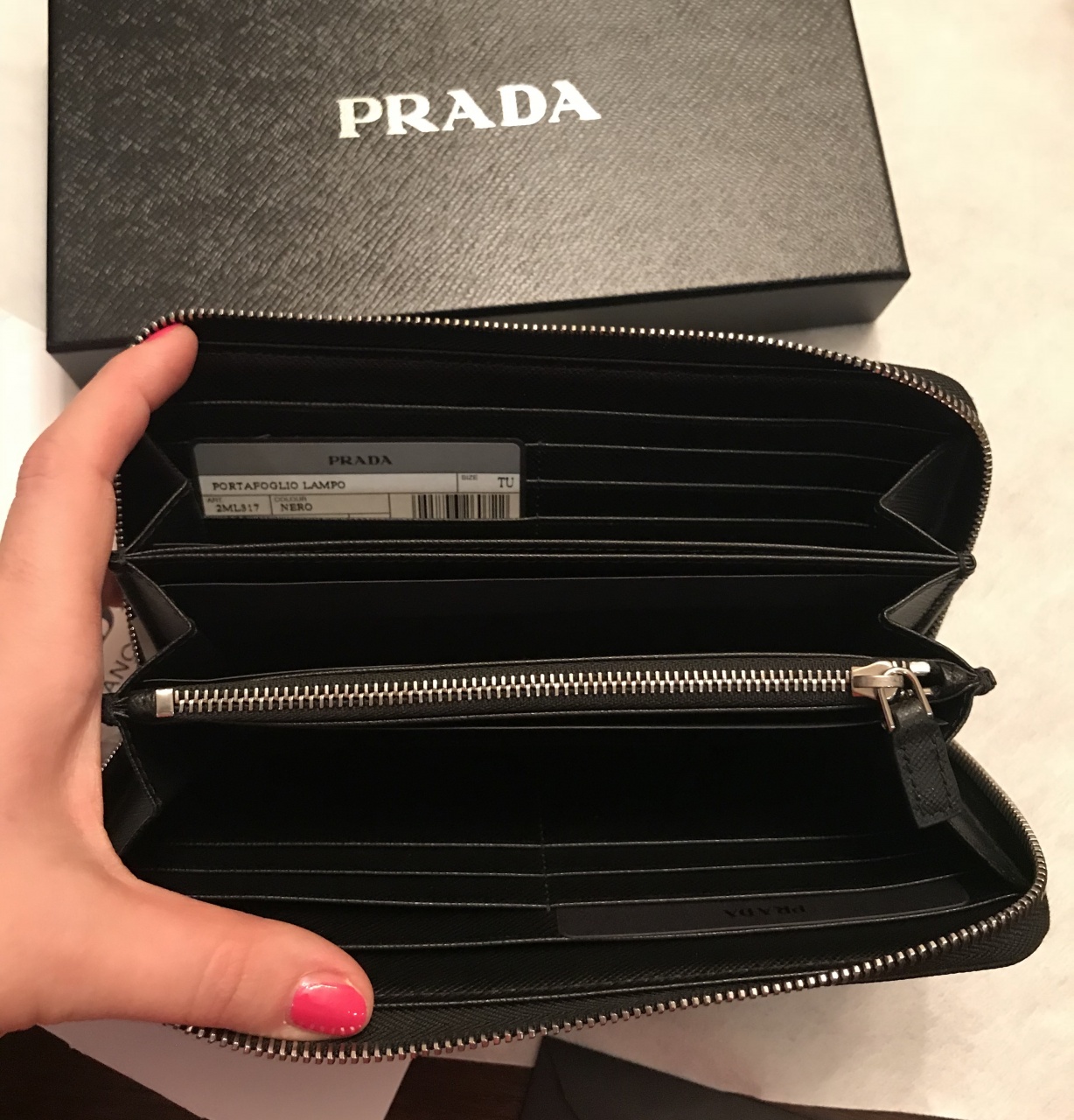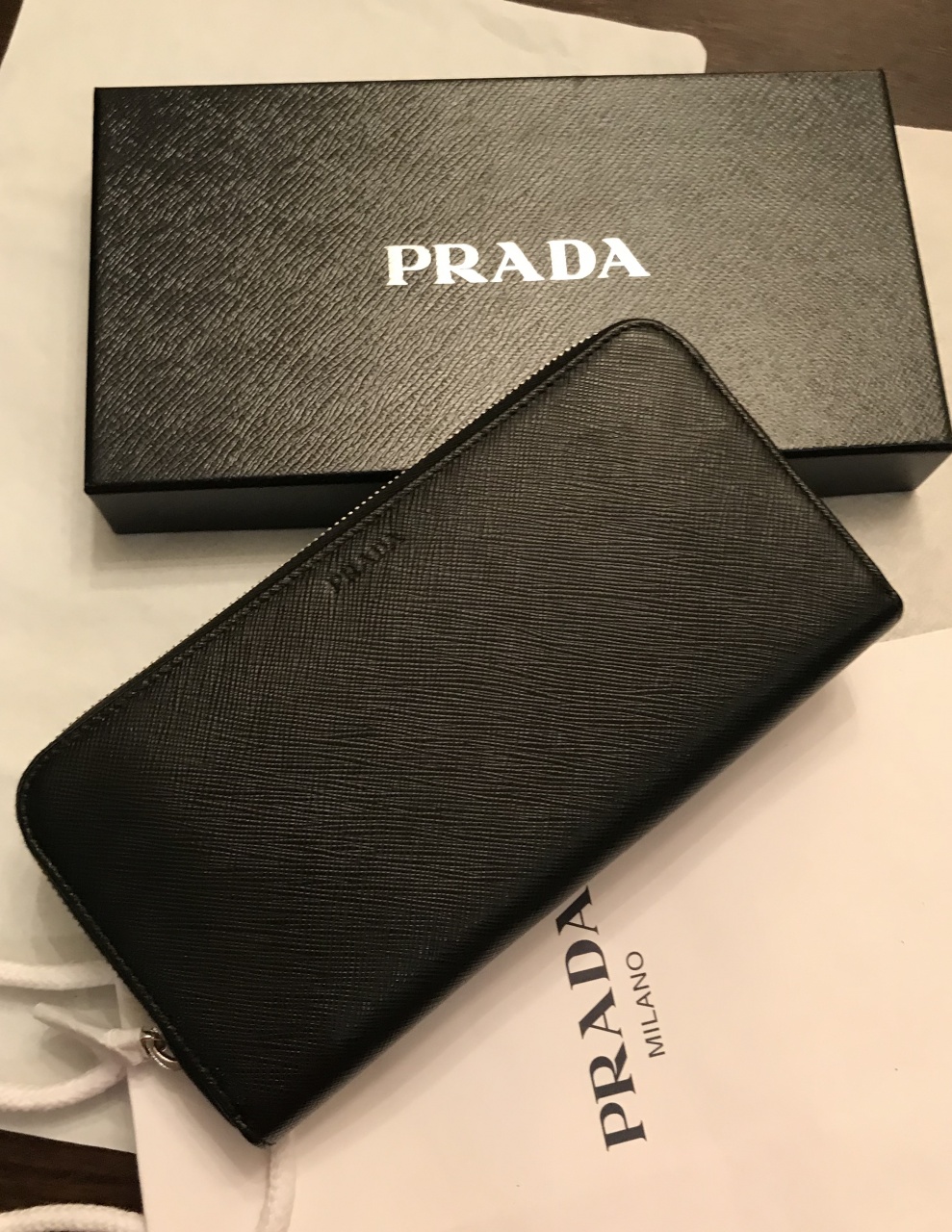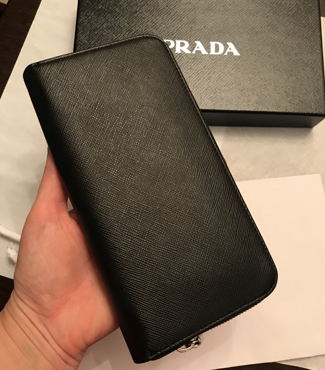 ⭐️ PRADA ⭐️ Мужское портмоне на молнии. Новое, вся аутентика. Кожа Saffiano, цвет - черный(Nero)