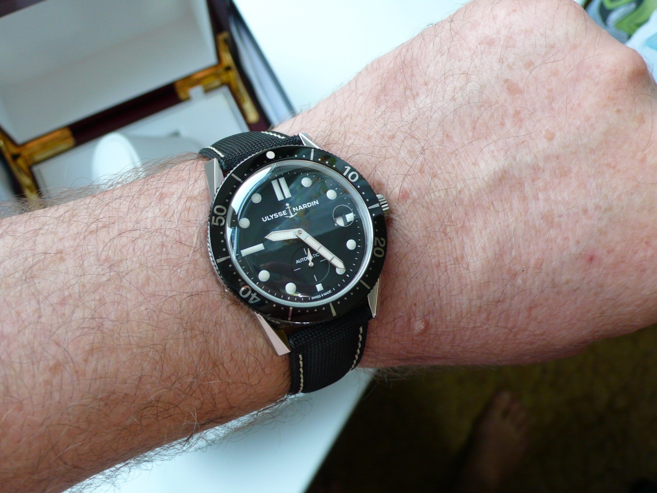 К продаже предлагается новинка Базеля 2017-Ulysse Nardin Diver Le Locle. Реинкарнация модели компании 1964 года. Диаметр часов 42,2мм. Водозащита 100м. Мануфактурный калибр UN-320 с двухдневным запасом хода и кремниевыми компонентами, что говорит о мощной технической базе мануфактуры, что всегда славилась своими морскими хронометрами. Часы в состоянии новых. Только примерялись. Куплены недавно,здесь на форуме, у уважаемого форумчанина. Просто не подошли. Изначально ставлю адекватную цену. Дешевле нет ни на одной торговой площадке в мире. Без обмена.
