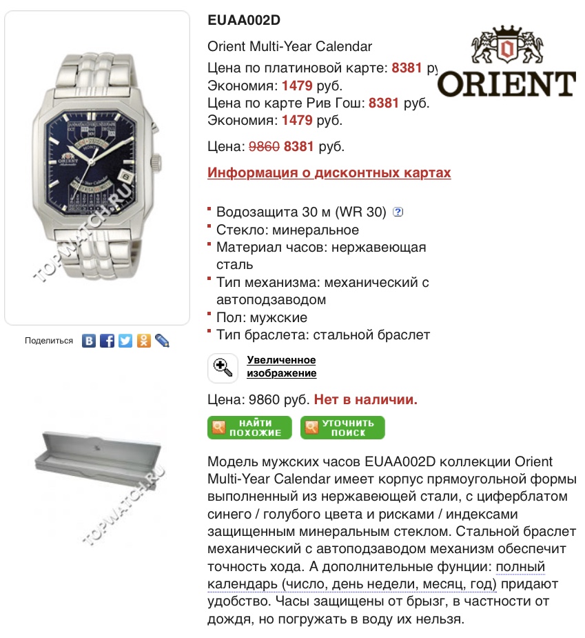 Мужские Orient, механические в стали FET0P002B0 strannik71 Orient 15 30.10.2012 00:14