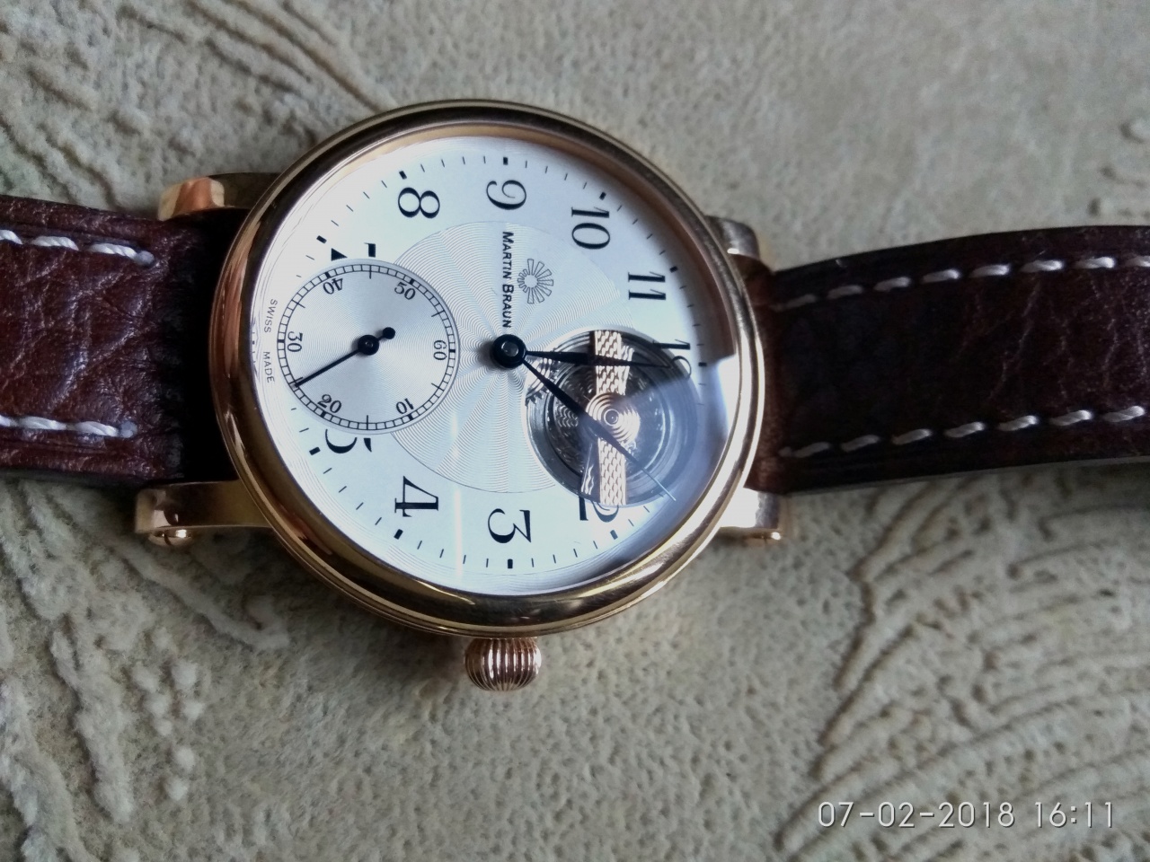 в связи с ненужностью мне такой дорогой вещи ,предлагаю к продаже крупные золотые часы Martin Braun Le Belle Rose Gold ,лимитка № 004, диаметр 42 мм ,толщина 10,5 мм,механизм ета 6498.куплены здесь в 2016 году у уважаемого форумчанина,часы в великолепном состоянии ,полировку, как и проверку механизма ,делал предыдущий продавец,я носил их только один раз,лежат мёртвым грузом,раз в месяц достаю подвожу и убираю обратно,боюсь носить и потерять. В коробке не было подушечки для часов,могу дать от других, но по размеру узковата на фото видно.ремень кастом.Цена таких новых 17 000 долл(около миллиона по сегодняшнему курсу).моя цена - в 2 раза дешевле + хороший торг на старте.Пересылки нет,Только в Москве из рук в руки.Вот ссылка на такие часы (единственное предложение что я нашёл)