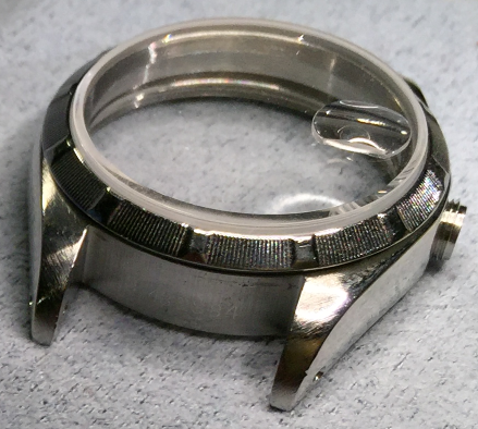 - уберите механизм из корпуса и крышку тоже, установите корпус на плоскую оправку кристаллом вверх, накройте безель и кристалл мягкой тканью, и осторожно прижмите безель сферической оправкой, которая по диаметру больше чем кристалл, чтобы она ложилась по окружности безеля, и ни в коем случае не прикасалась к кристаллу и увеличительному стеклу