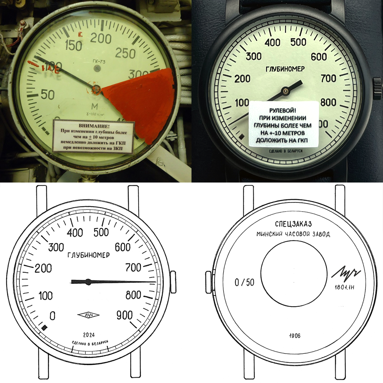 Минским Часовым Заводом. Часы посвящены истории подводных сил России, и концептуально повторяют внешний вид прибора глубиномер, который используется на отечественных подводных лодках.