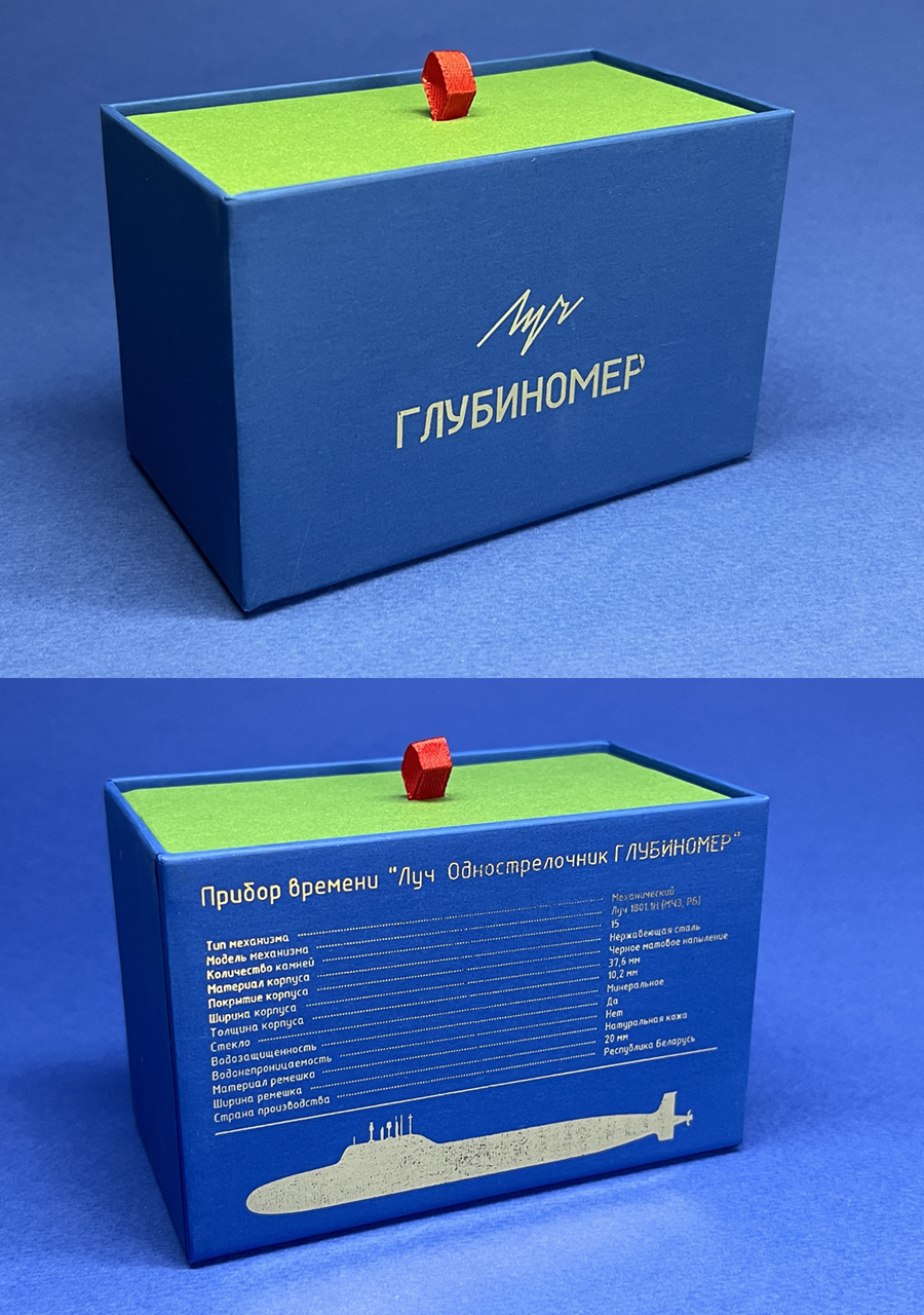 Часы выполнены на базе модели Луч Однострелочник. Корпус диаметром 38 мм и толщиной 10.2 мм, выполнен из нержавеющей стали с чёрным матовым алмазоподобным напылением. Задняя крышка имеет окошко, через которое можно наблюдать за работой мануфактурного механизма 1801.1Н, произведённого в Беларуси. Стекло куполообразное минеральное. Ремешок шириной 20 мм, мягкий, выполнен из натуральной кожи. На заводной головке и застёжке расположены логотипы Луча.