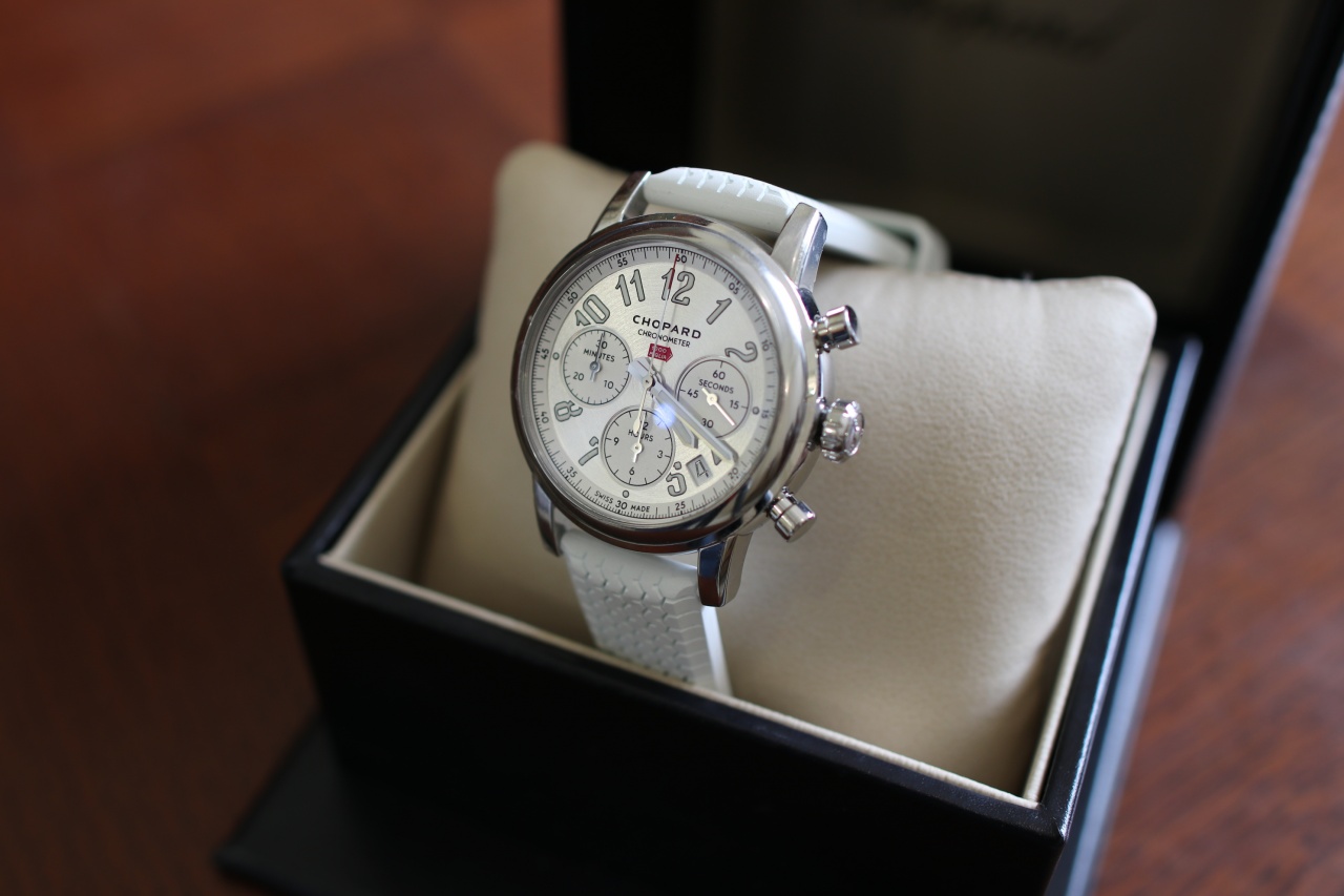 Новые часы , корпус полностью в заводских пленках! В разделе б/у из за отсутствия комплекта! Невероятно красивый хронограф! Необычная отделка задней крышки! Последняя версия всем известного спортивного хронографа от Chopard!