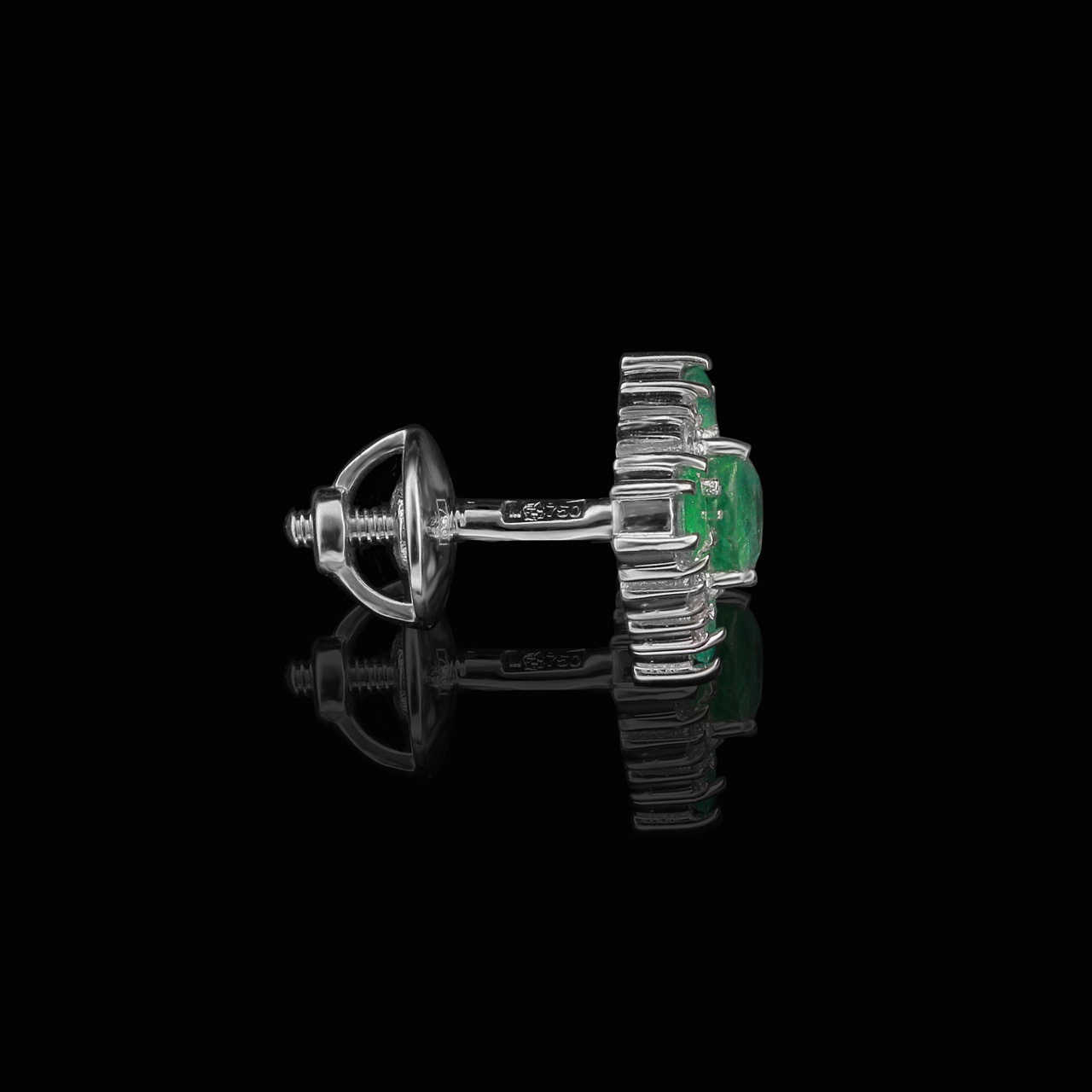Серьги-пуссеты из белого золота с изумрудами 0,77 карат и бриллиантами 0,06 карат