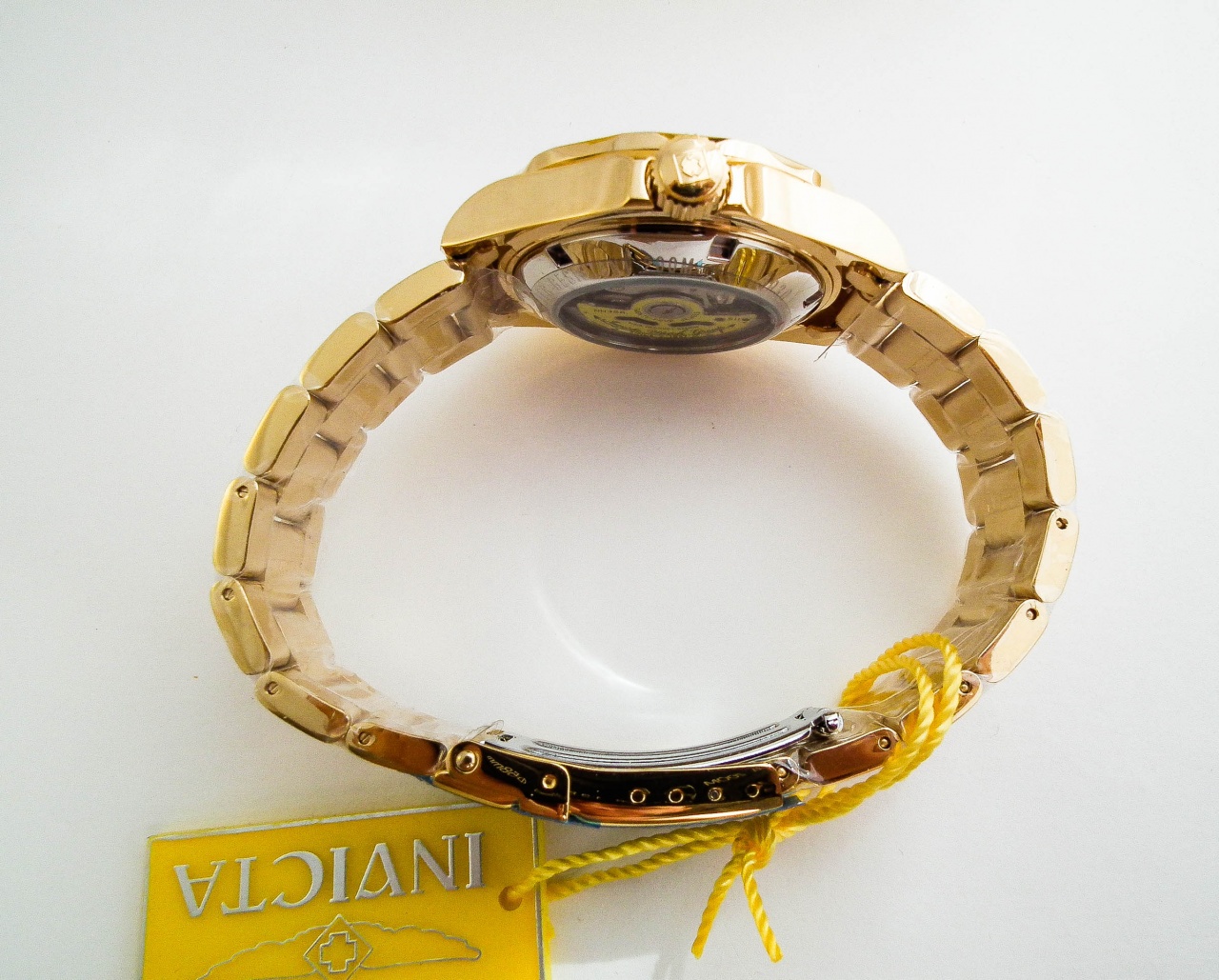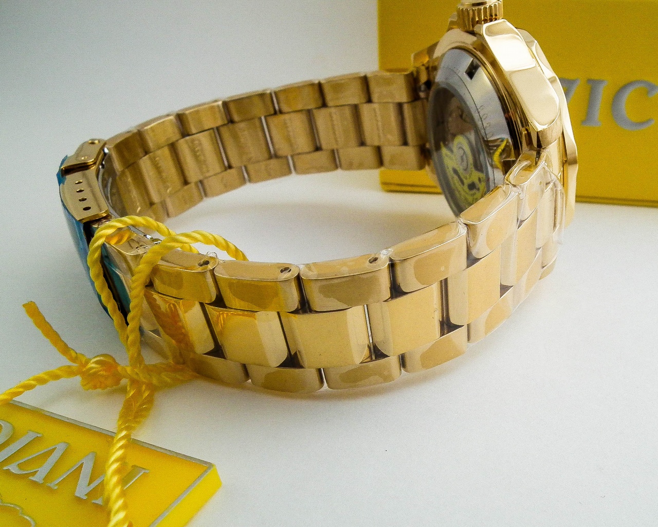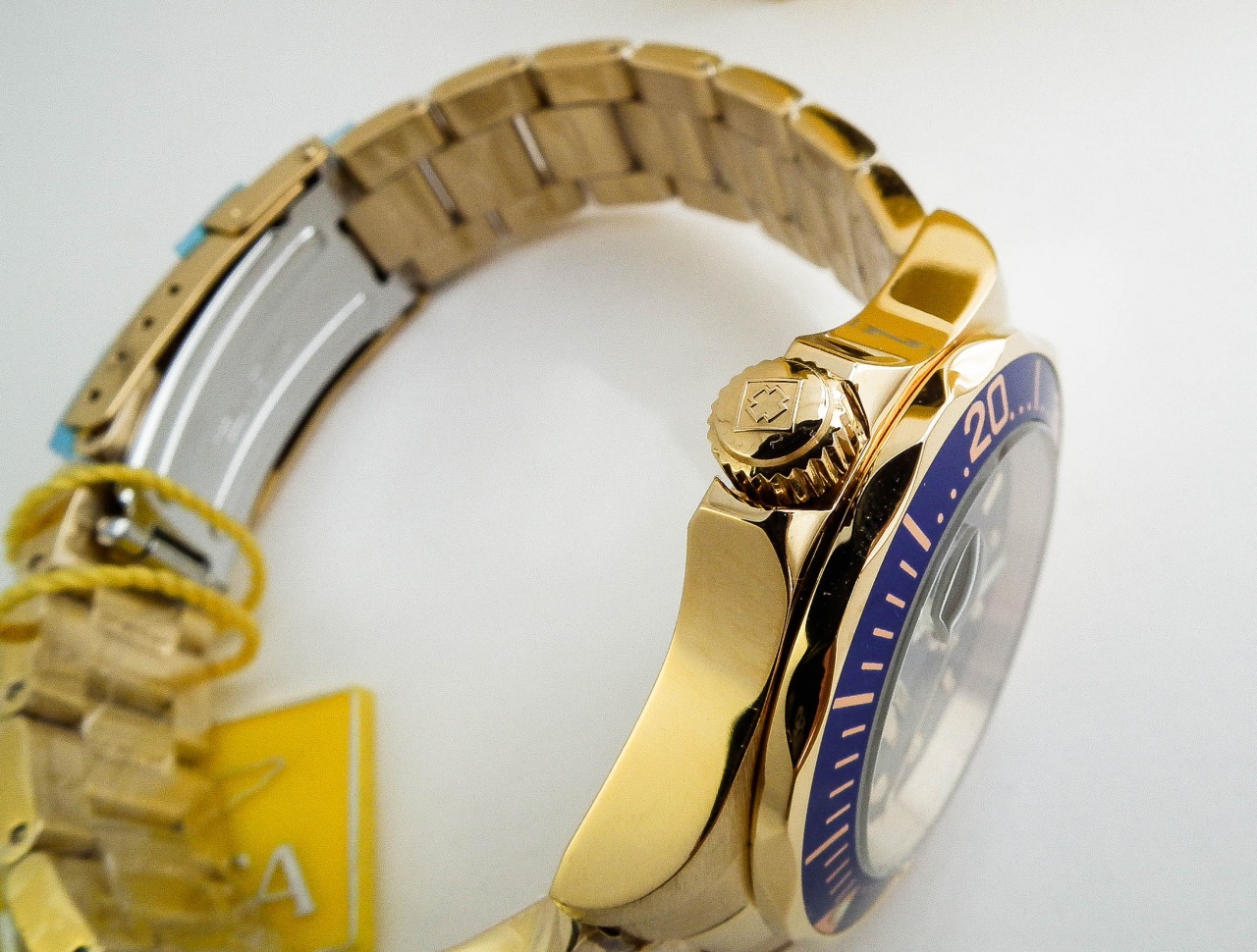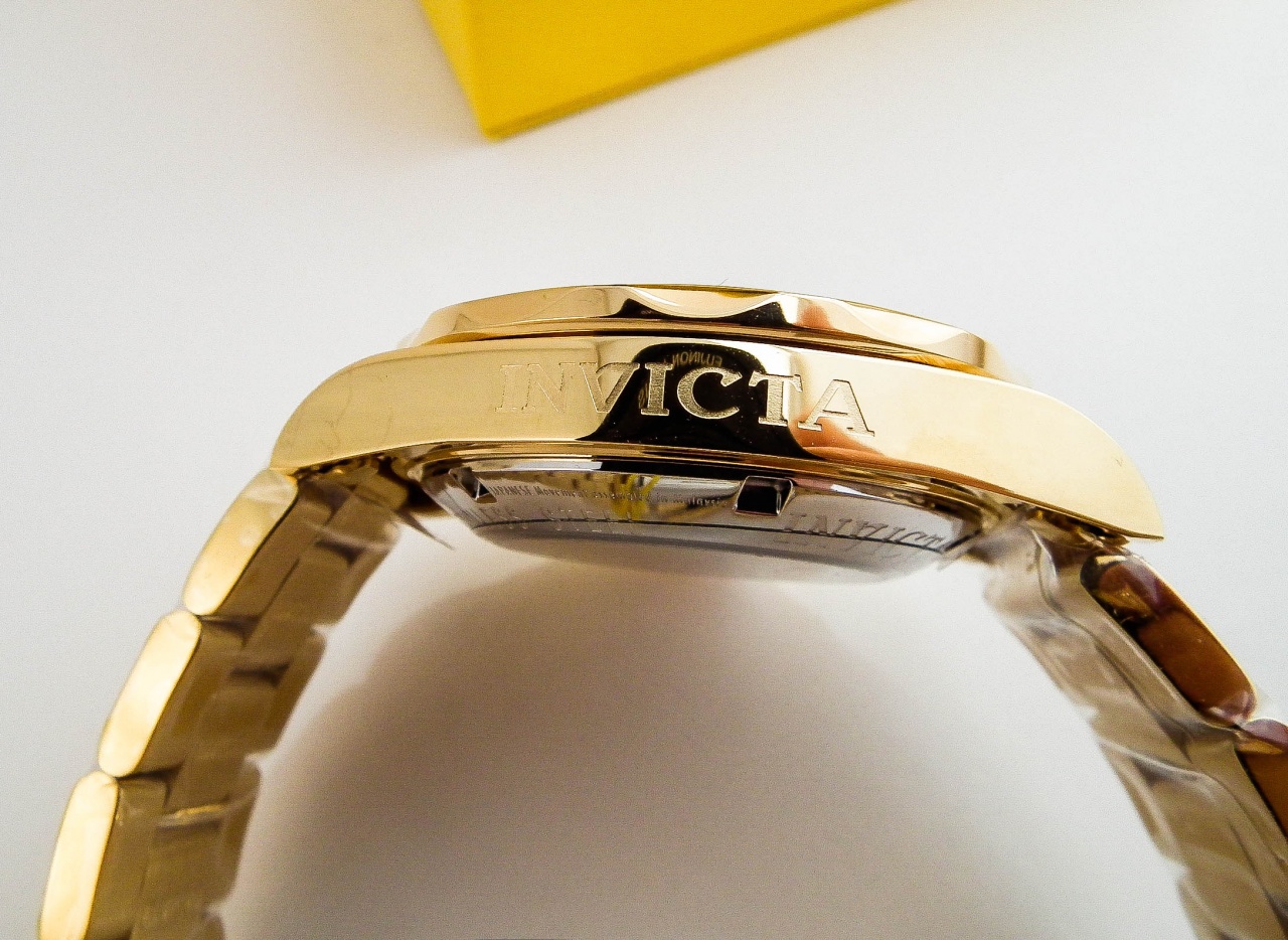 Корпус и браслет: матово-полированная хирургическая нержавеющая сталь с ионизированным покрытием золотом 21 карат – технология Invicta Gold Plated – 958 российская проба