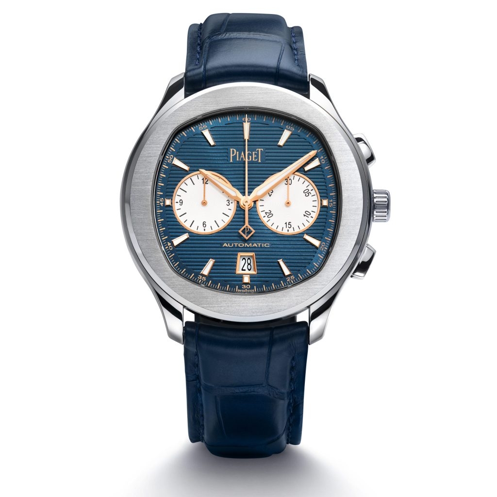 Эта модель представляет собой эксклюзивную версию хронографа Polo S, выпущенного в 2016 году. В отличие от модели из каталога, которая предлагается с серебристым или синим циферблатом, у этой версии, доступной только в бутиках Bucherer, циферблат имеет более темный оттенок, который красиво подчеркивают розово золотые акценты в минутной разметке, на часовых метках и стрелках. Розовым золотом на циферблате также обозначены контуры счетчиков хронограф, логотип Piaget и надпись «Automatic».