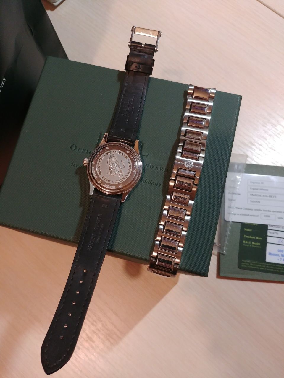 Продам отличные часы полученные по предзаказу в этом году в июне. Механизм BALL RR 1101, на основе ETA 2892. Антимагнитная защита до 80 000 а/м. Размер корпуса 40 мм. Тритиевая подсветка желтого цвета. Ход отличный, около +2 сек в сутки, при активной носке. Родной браслет изрядно поцарапан, на самом деле он просто полированный и царапается от взгляда (ничего страшнее офисного поюза часам не доставалось). В комплекте отдам отличный оригинальный резиновый ремешок с оригинальной стальной баклей. Ремешок сделан под крокодила, с обратной стороны так и не отличишь от кожи. Ремешок носился буквально один день. На корпусе часов только микроцарапки, которые возможно разглядеть только с лупой.