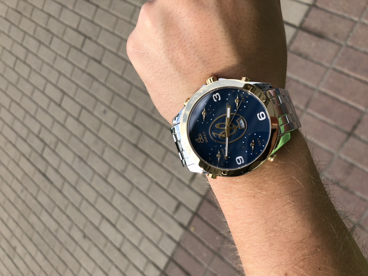 Прекрасные Jacob & Co. браслет на руку до 19 см! Стекло без сколов и царапин! Часы после полировки и замены батареек! Очень не обычный сине-зеленый цвет циферблата!