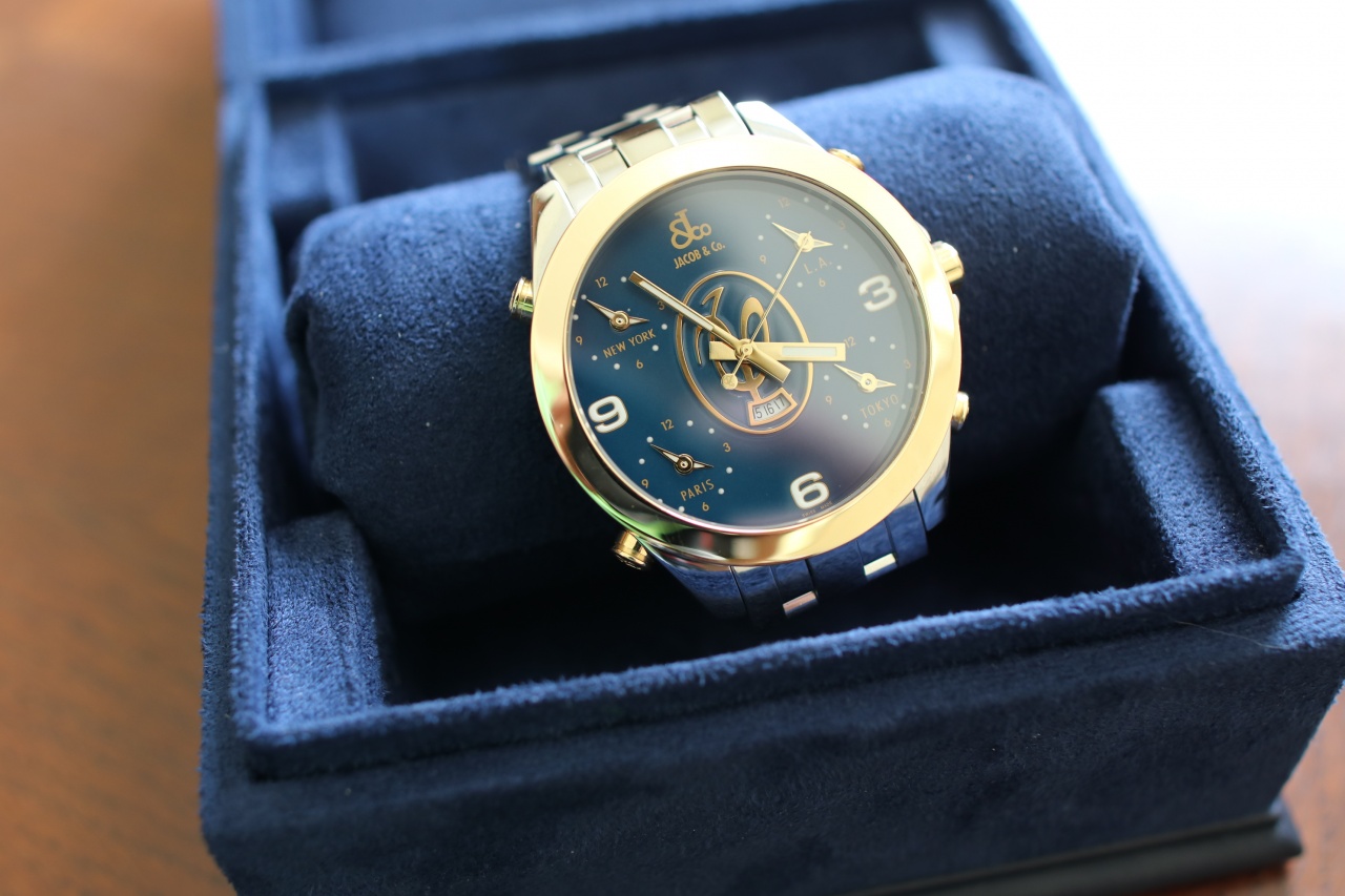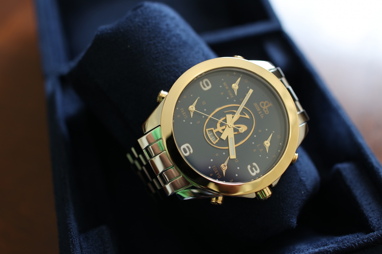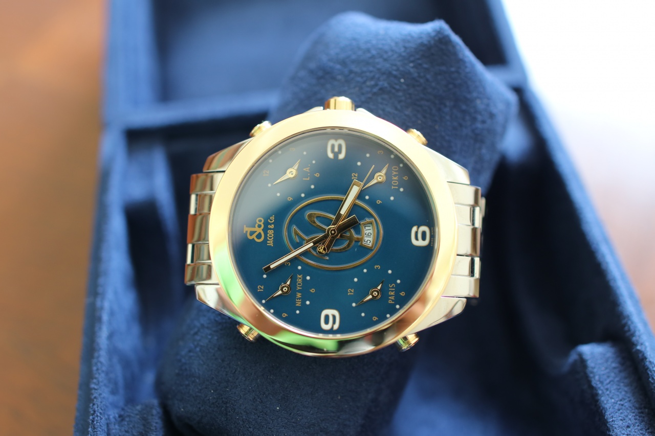 Jacob & Co. 5 time zone ( Сталь/Золото , Браслет , Синий циферблат )