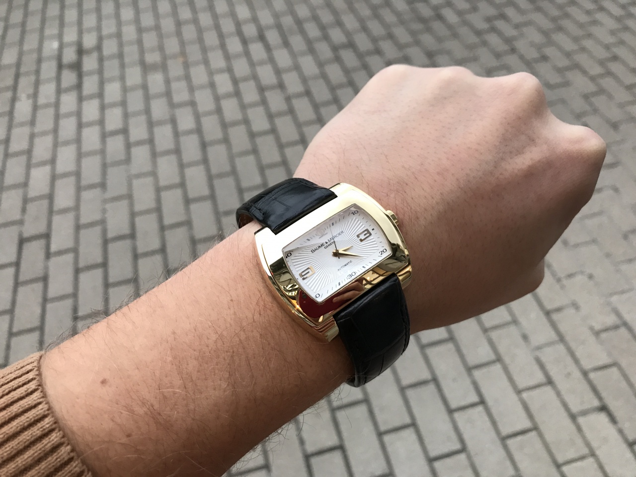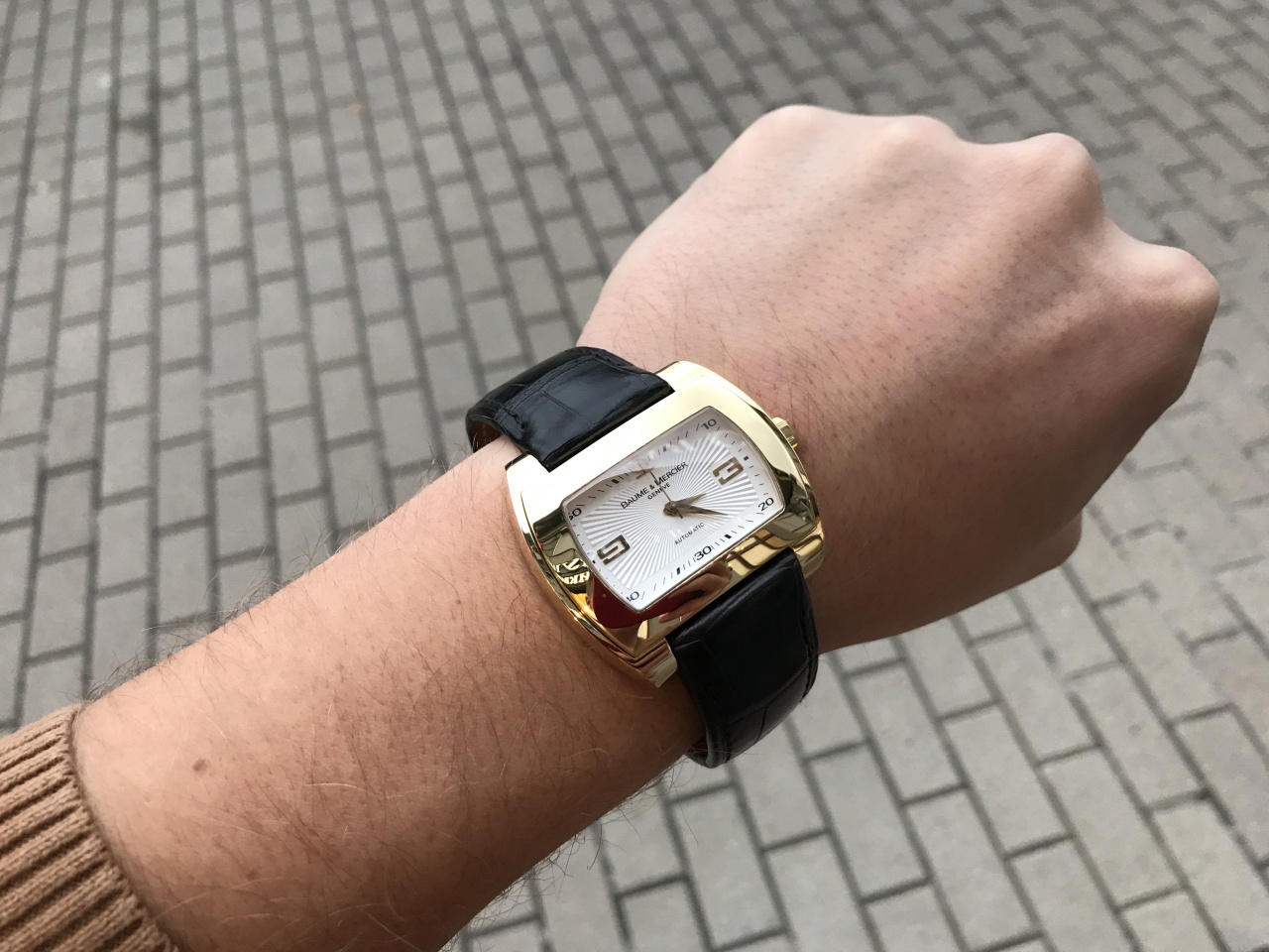 Прекрасный костюмный золотой Baume! Очень приятно лежат на руке! Чистый вес золота 75 грамм! После полировки и ТО ! Ход отличный! Ремень на твердую 4! Из комплекта коробка и инструкция