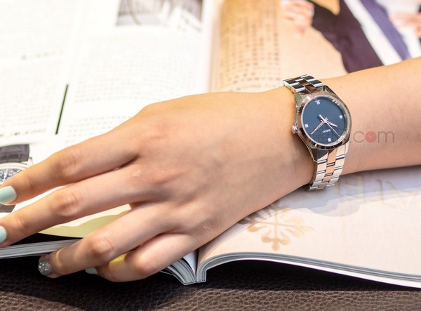 Корпус - сталь, безель и вставки на браслете - розовая керамика, бриллианты - 4шт.