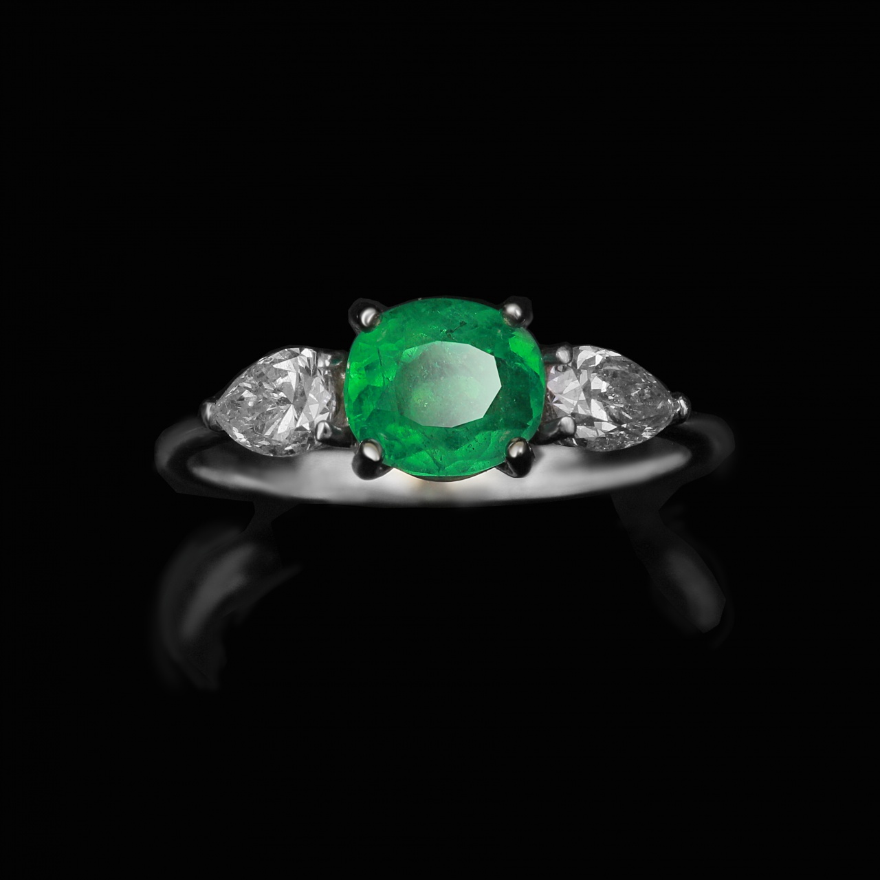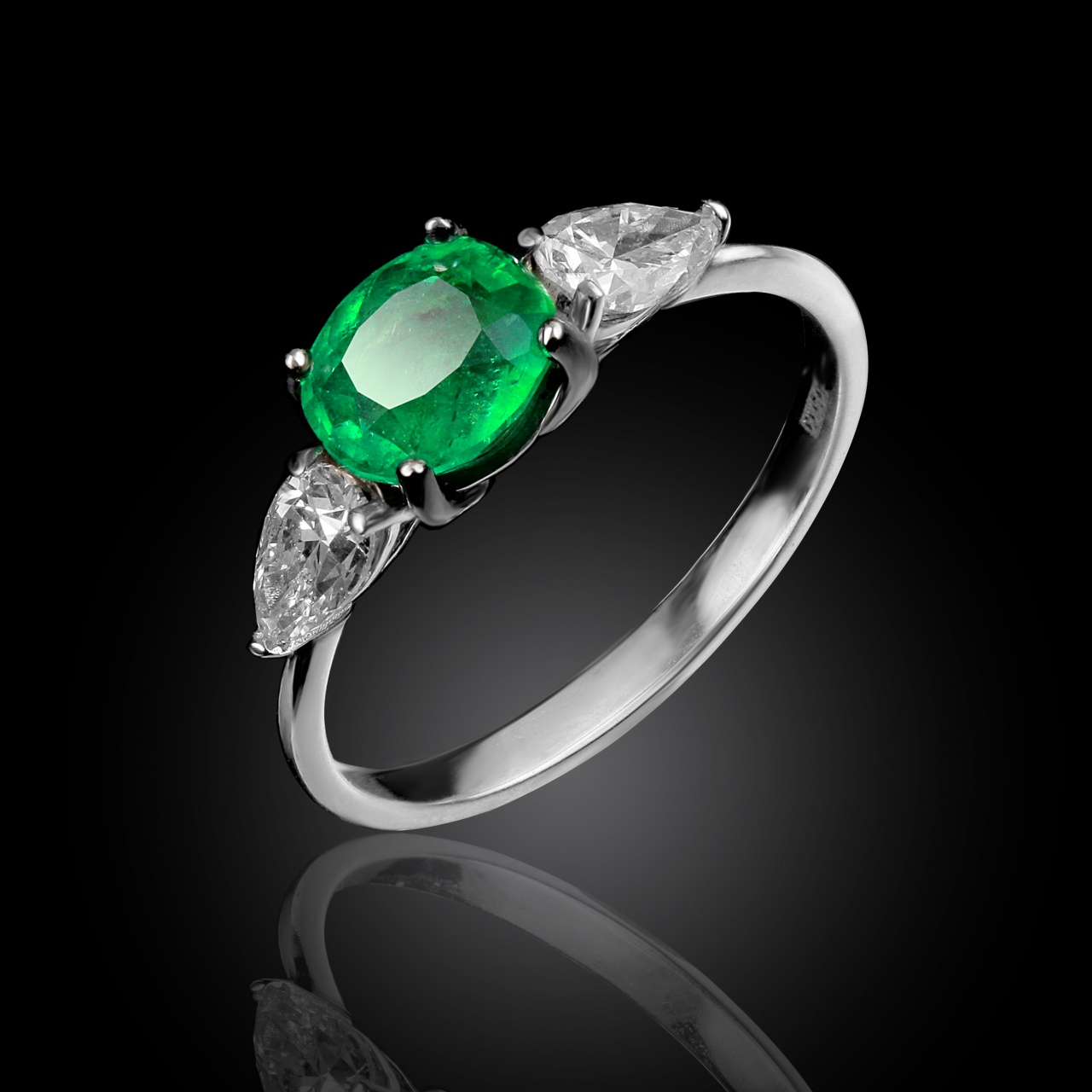 Кольцо из белого золота с изумрудом 0,92 карат и бриллиантами 0,60 карат