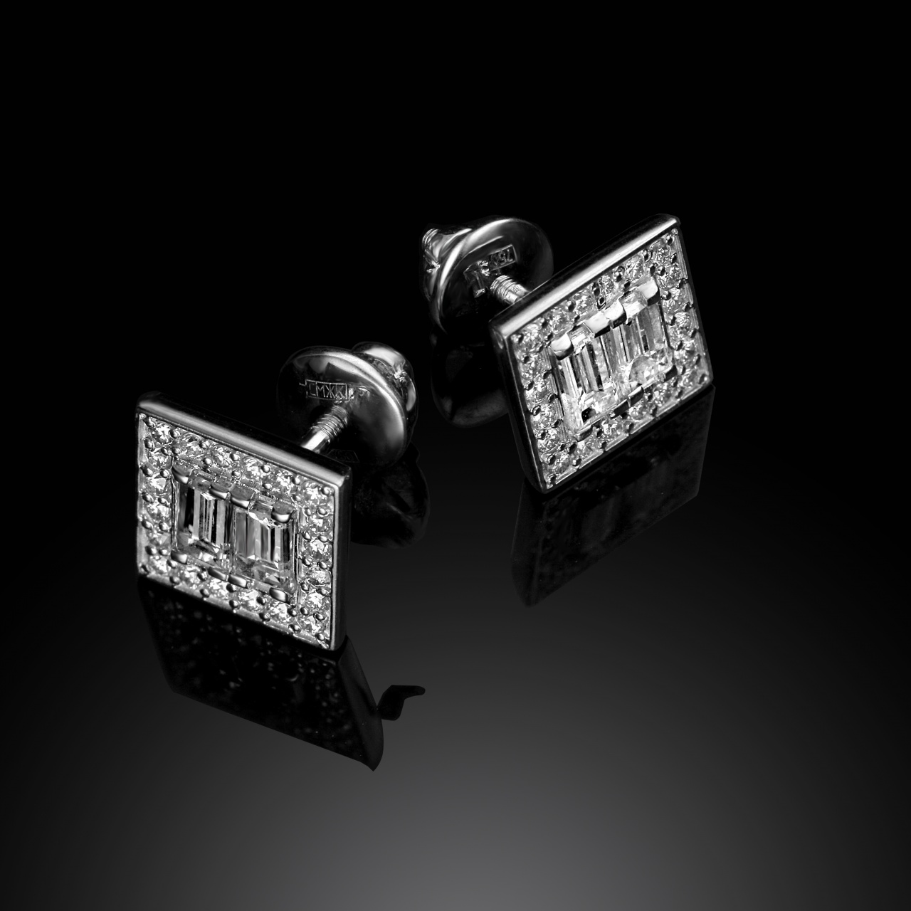 Серьги-пуссеты из белого золота с бриллиантами 0,76 карат