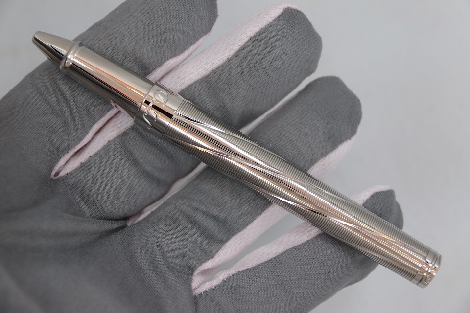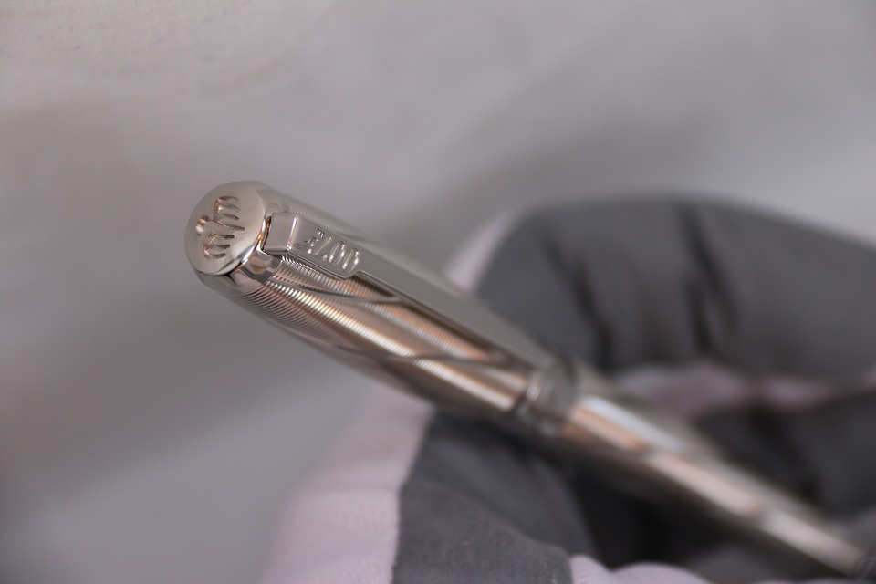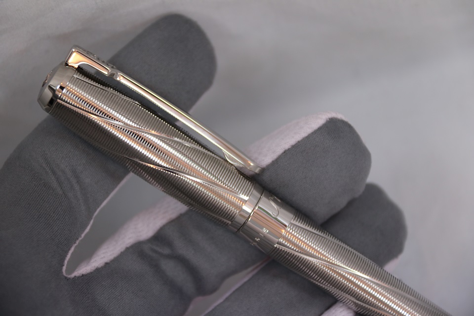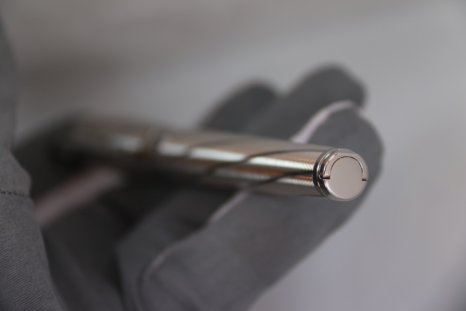 На создание оригинального дизайна письменного инструмента французских мастеров вдохновил знаменитый ракурс - 'взгляд на мир' изнутри дула пистолета. В основе - классическая модель Ligne D, отличающаяся лаконичными деталями и неповторимой грациозностью. Самобытную гильошированную отделку ручки подчеркивает изысканное палладиевое покрытие. Клип украшает выгравированный глиф '007'. Верхушку колпачка венчает логотип Spectre. Экстраординарная деталь - специальный отсек для секретного персонального послания.