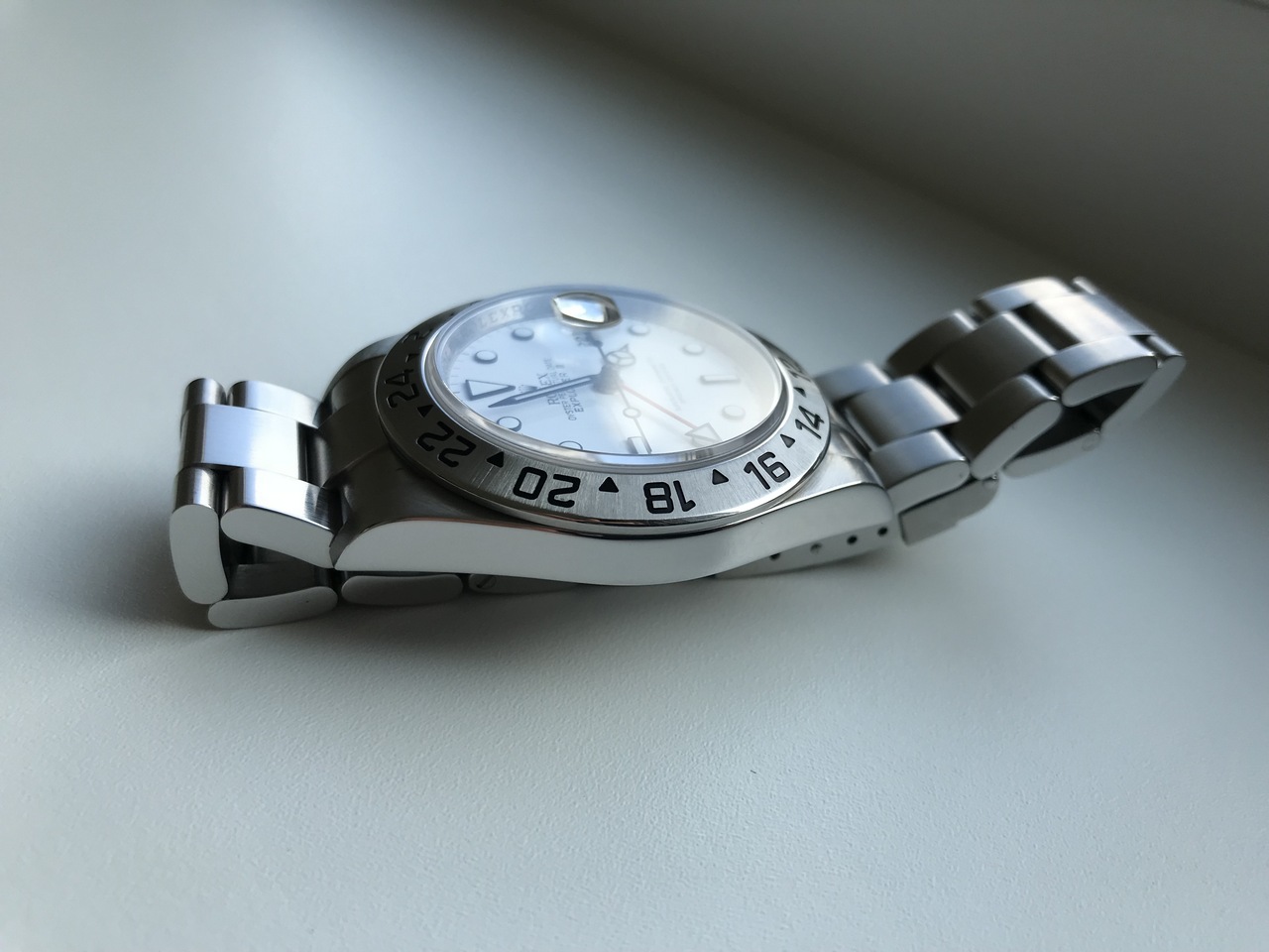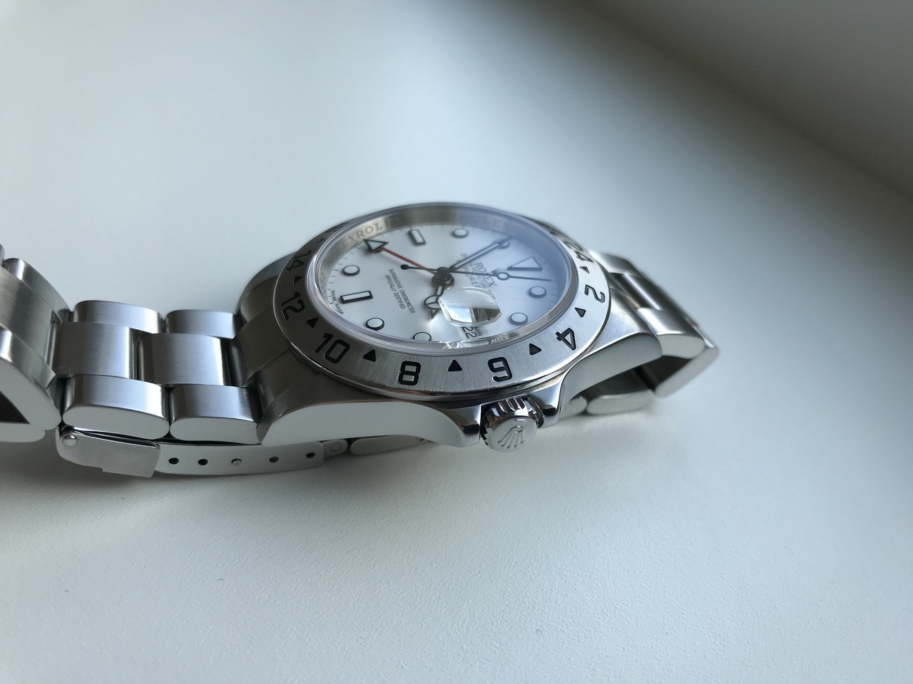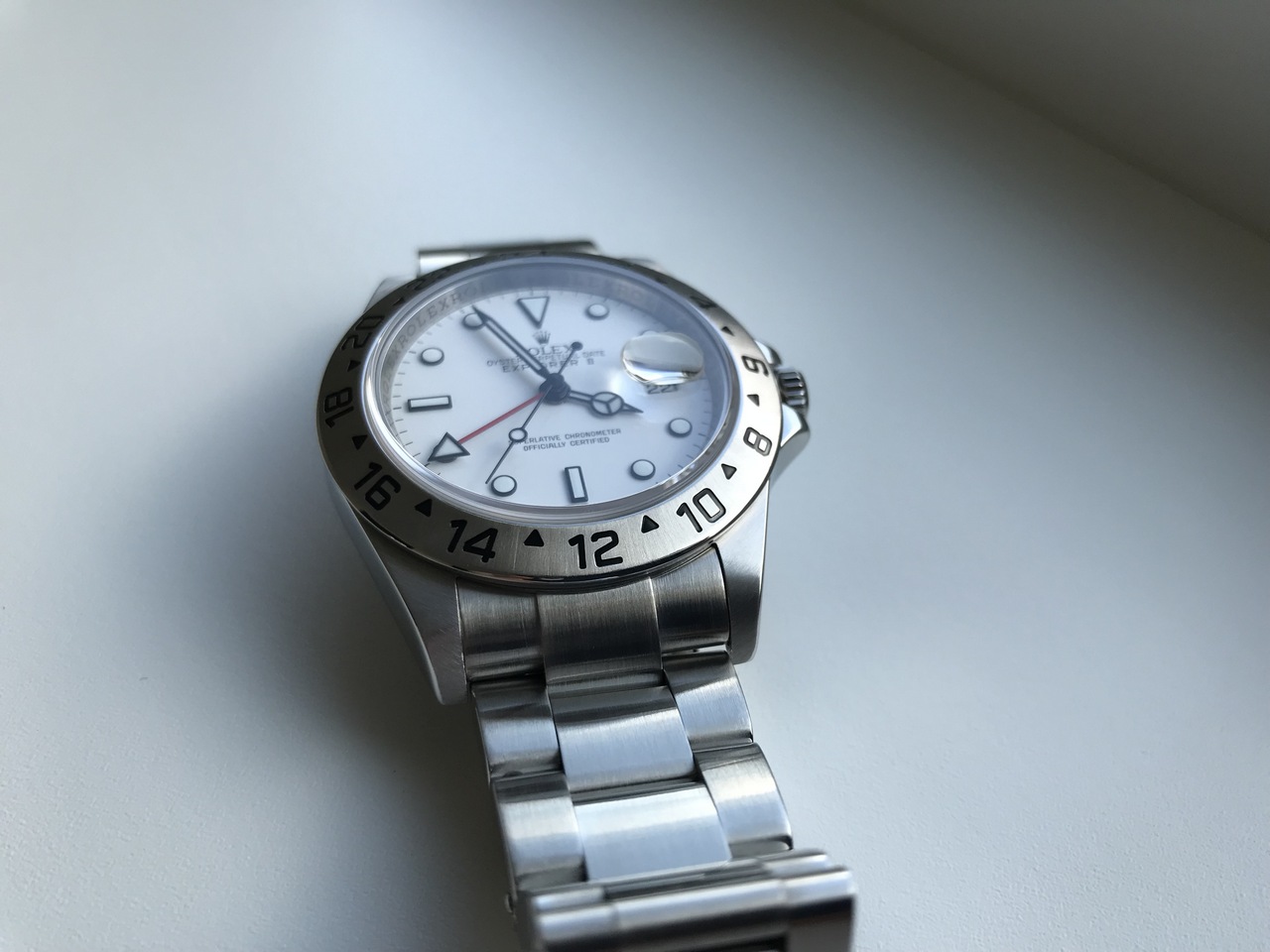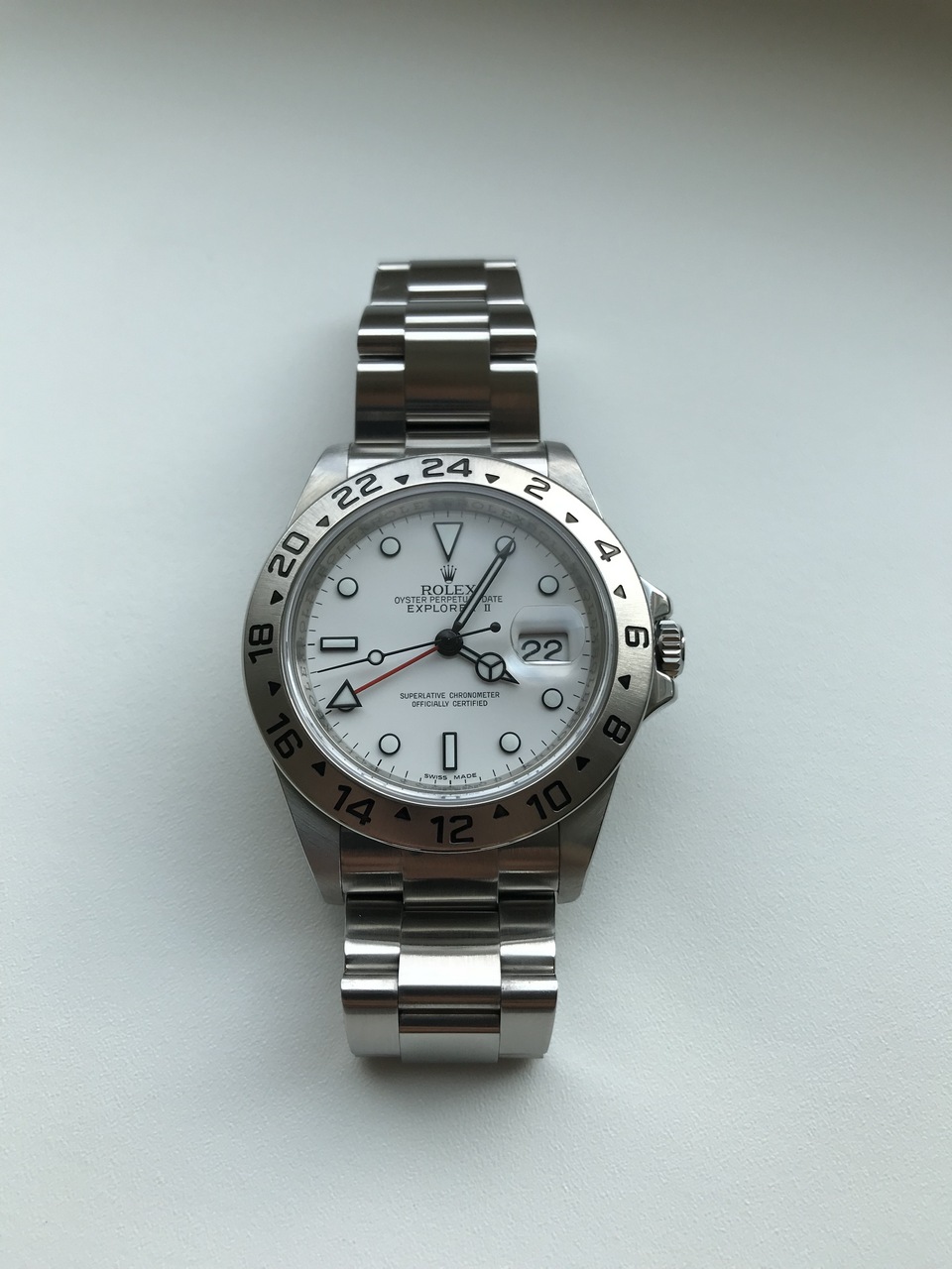 В продаже Rolex Explorer II 16570 с белым циферблатом.