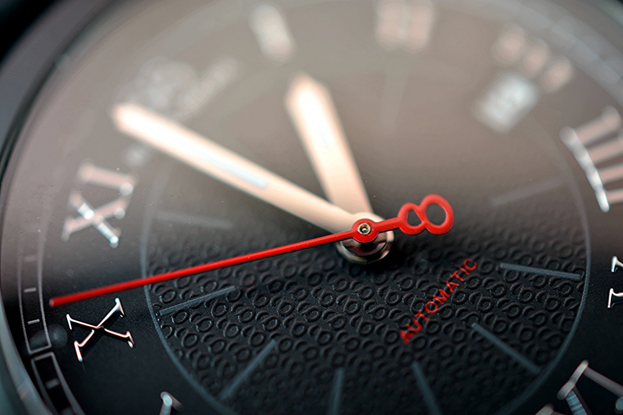 Стрелки не крупные, со светонакопителем. Секундная стрелка красная с восьмеркой у основания.