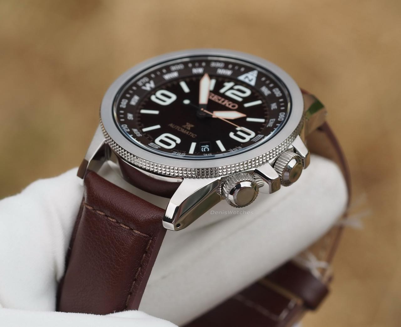 Темно-коричневый циферблат с накладным лого Seiko