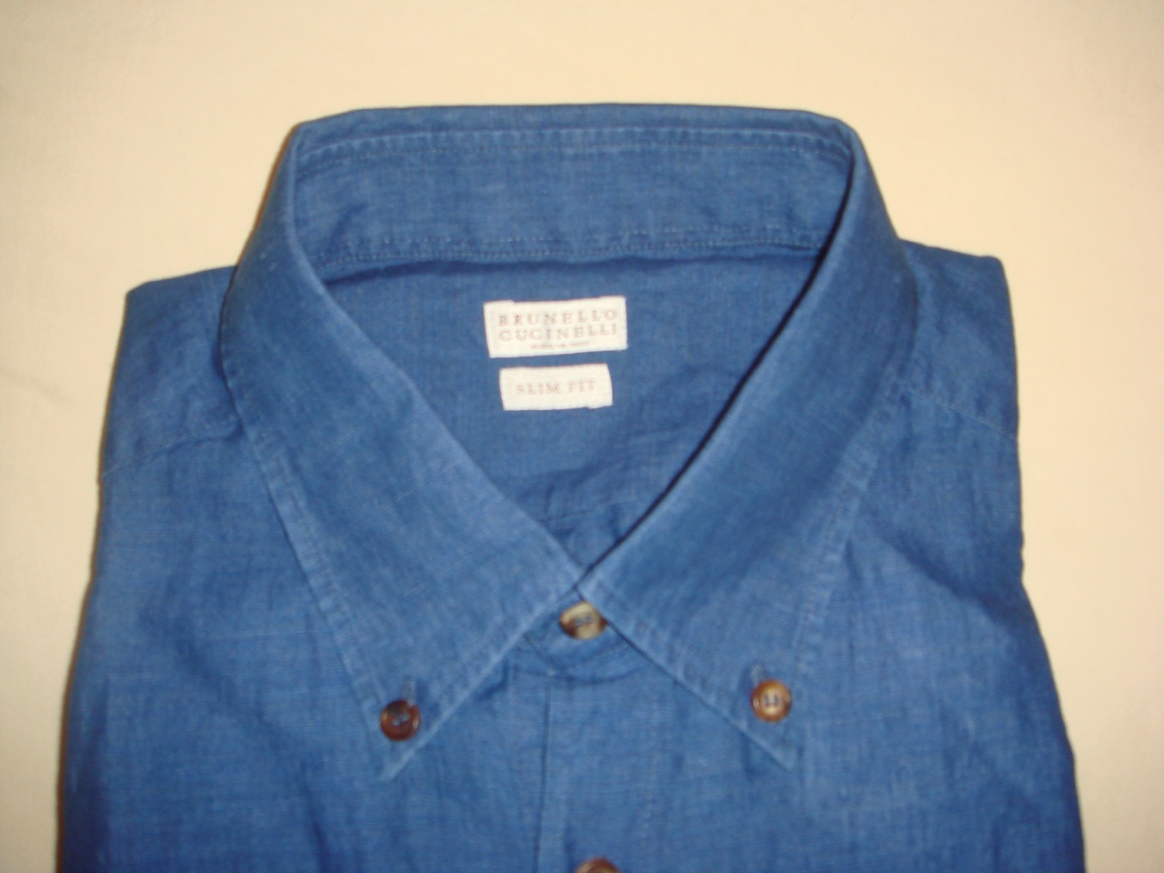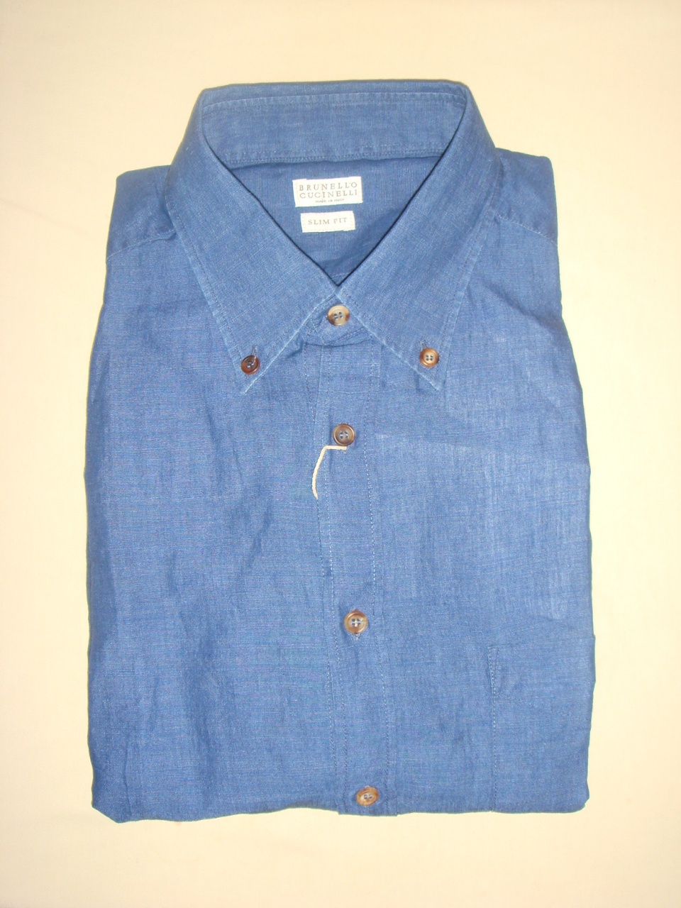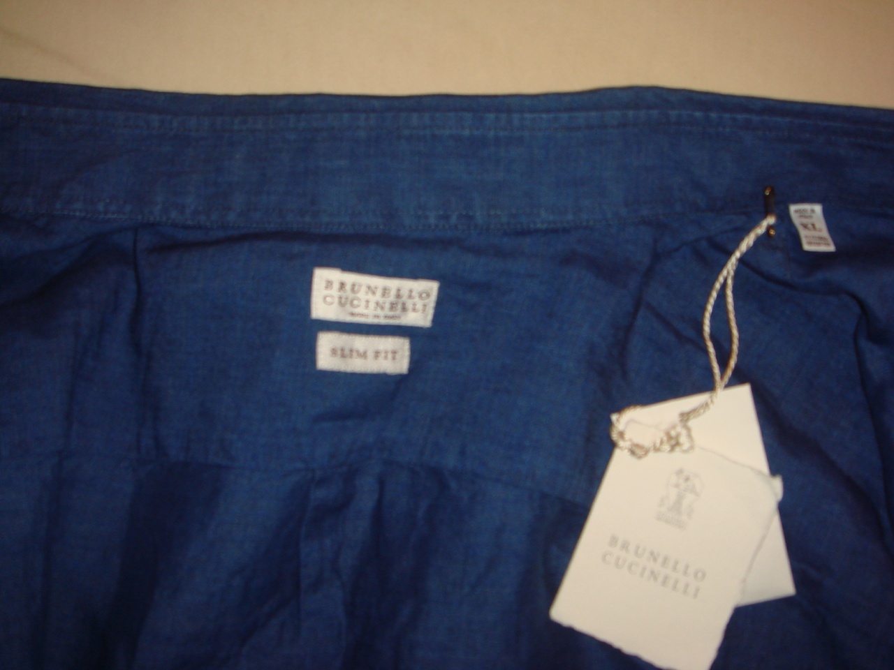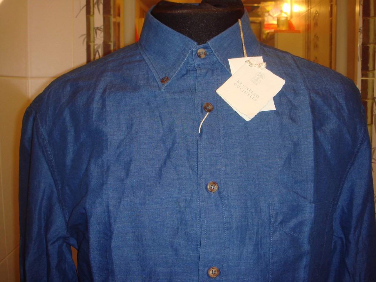 Продается новая мужская джинсовая рубашка бренда BRUNELLO CUCINELLI slim fit превосходного исполнения, логотип, деним насыщенного синего цвета, реальный цвет передан на второй фотографии, классический воротник, длинные рукава, роговые пуговицы, нагрудный кармашек, состав: 51% хлопок, 49 % лен, все бирки и запасная фурнитура прилагаются , гарантированный оригинал, размер ХL , производство Италия