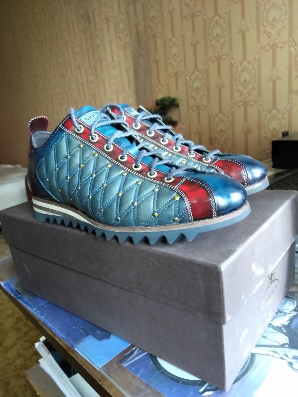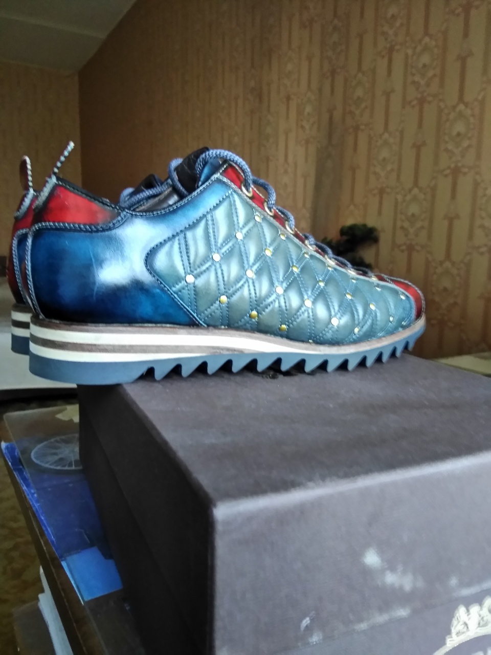 Покупал в Италии за 350 евро.Одевал пару раз.Размер 6,но скорее на наш 40.Длина по стельке 26см.Коробка.Пыльник.