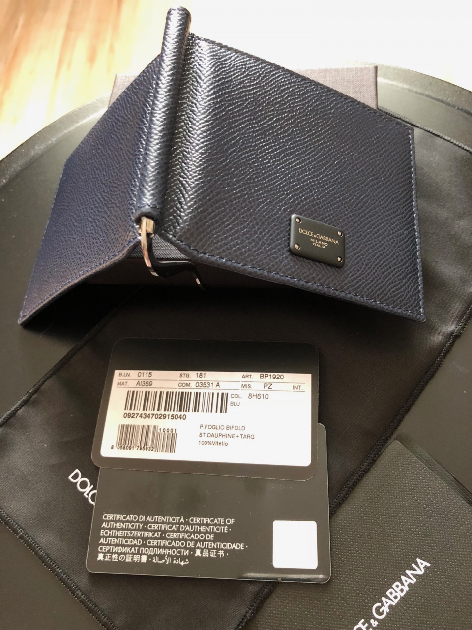 Зажим для денег ⭐️ Dolce&Gabbana ⭐️ Матовый патч с лого бренда. Кожа Dauphin, цвет темно-синий